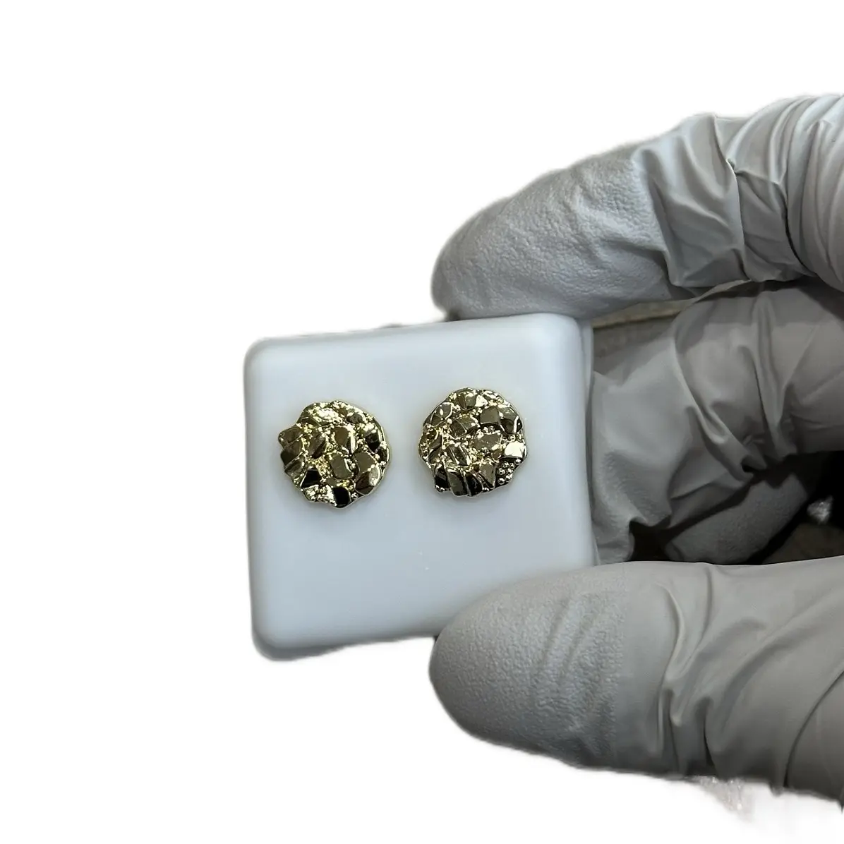 14K Gold Plated Brass Golden Nugget Cookie Stud Earrings with Cubic Zirconia Unisex 4 Sizes 12mm 14mm 16mm 20mm High Quality Polished