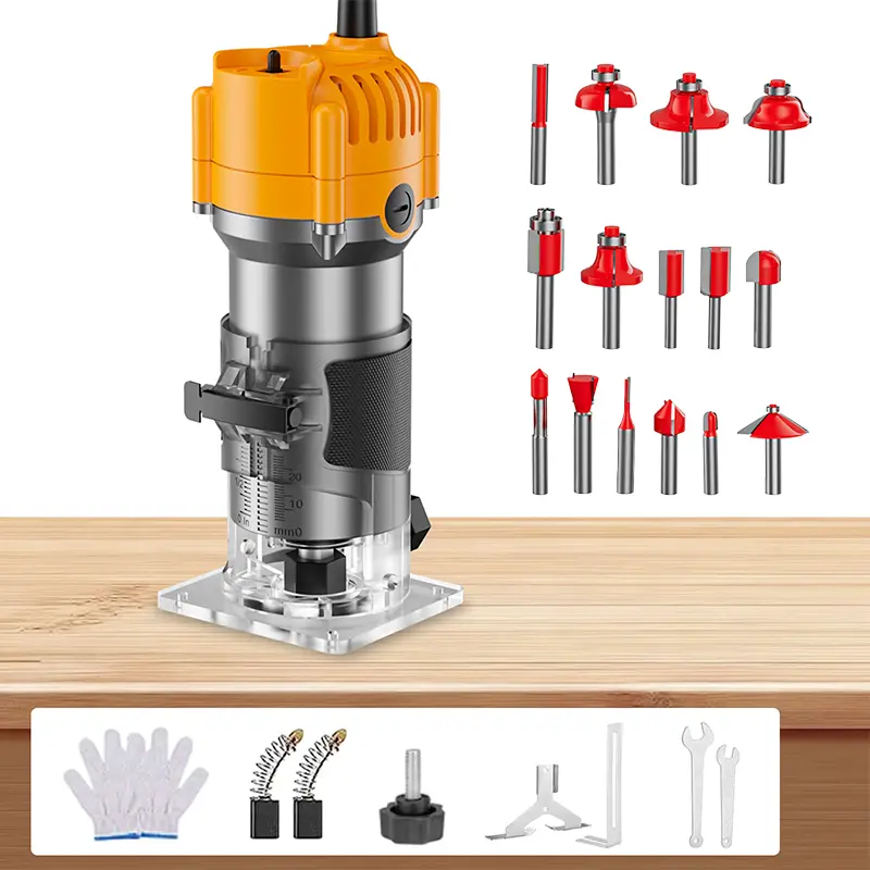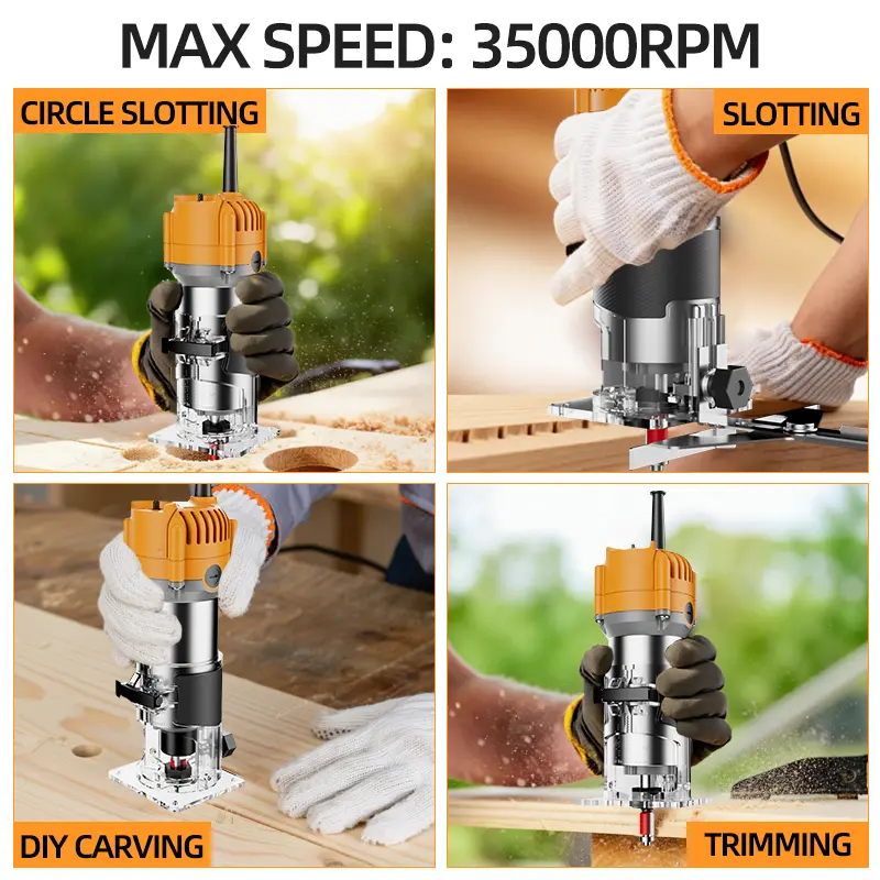 HANWISE upgraded edge trimming machine wired router, compact woodworking edge trimming router tool wired, woodworking router, suitable for woodworking slot milling and edge trimming, router power tool, gift for recipient
