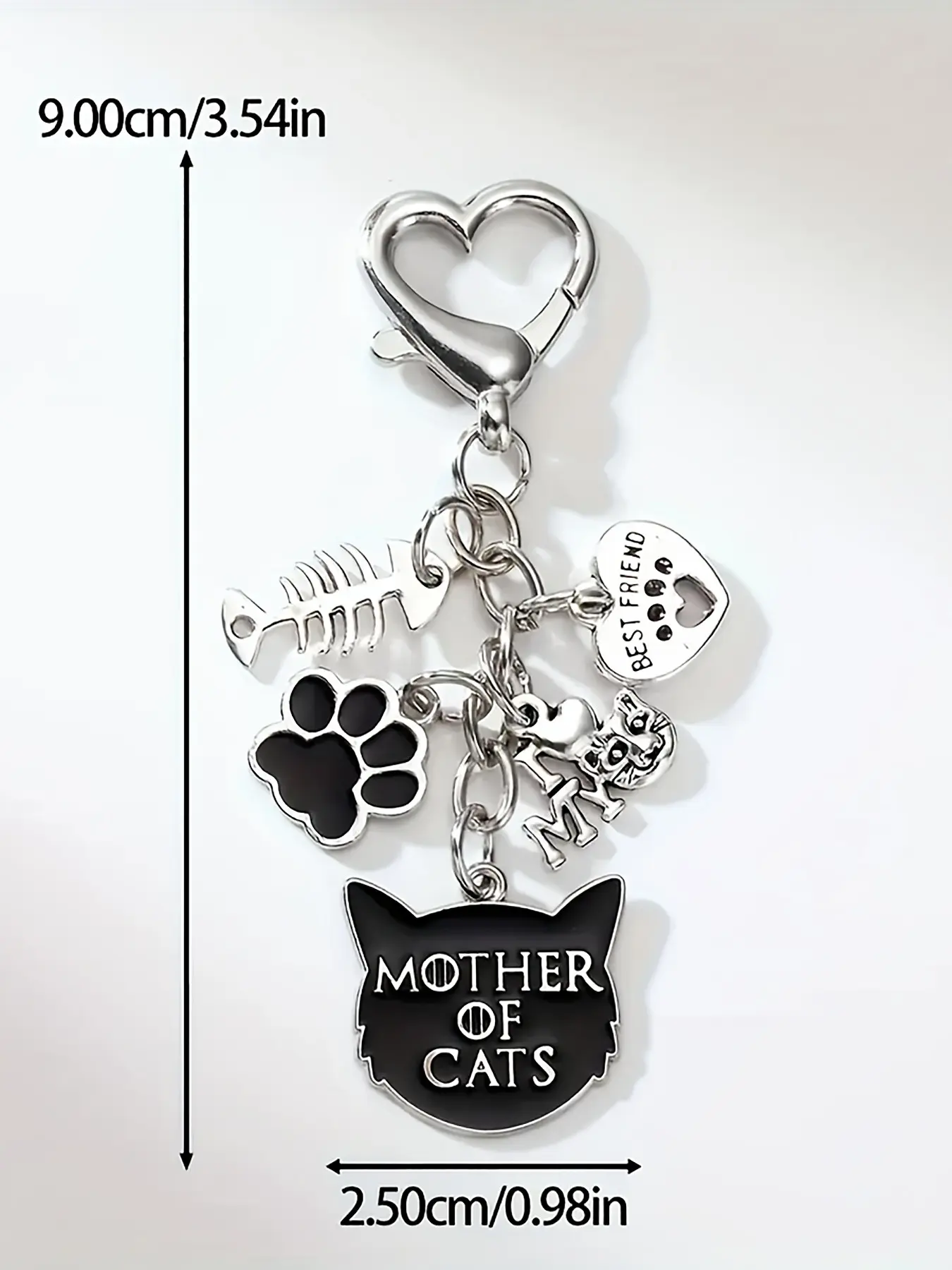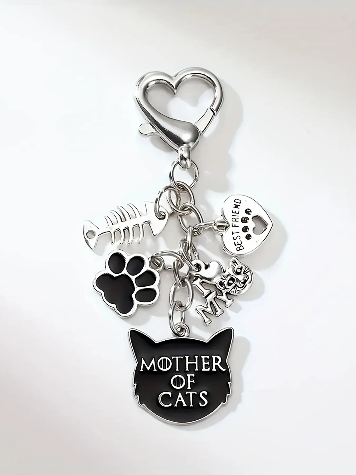 Cat Mom Keychain, Halloween Theme, Fishbone, Heart, Devil Cat, Claw Print, Lobster Clasp, Bag and Car Accessory, Ideal Gift, Alloy Material