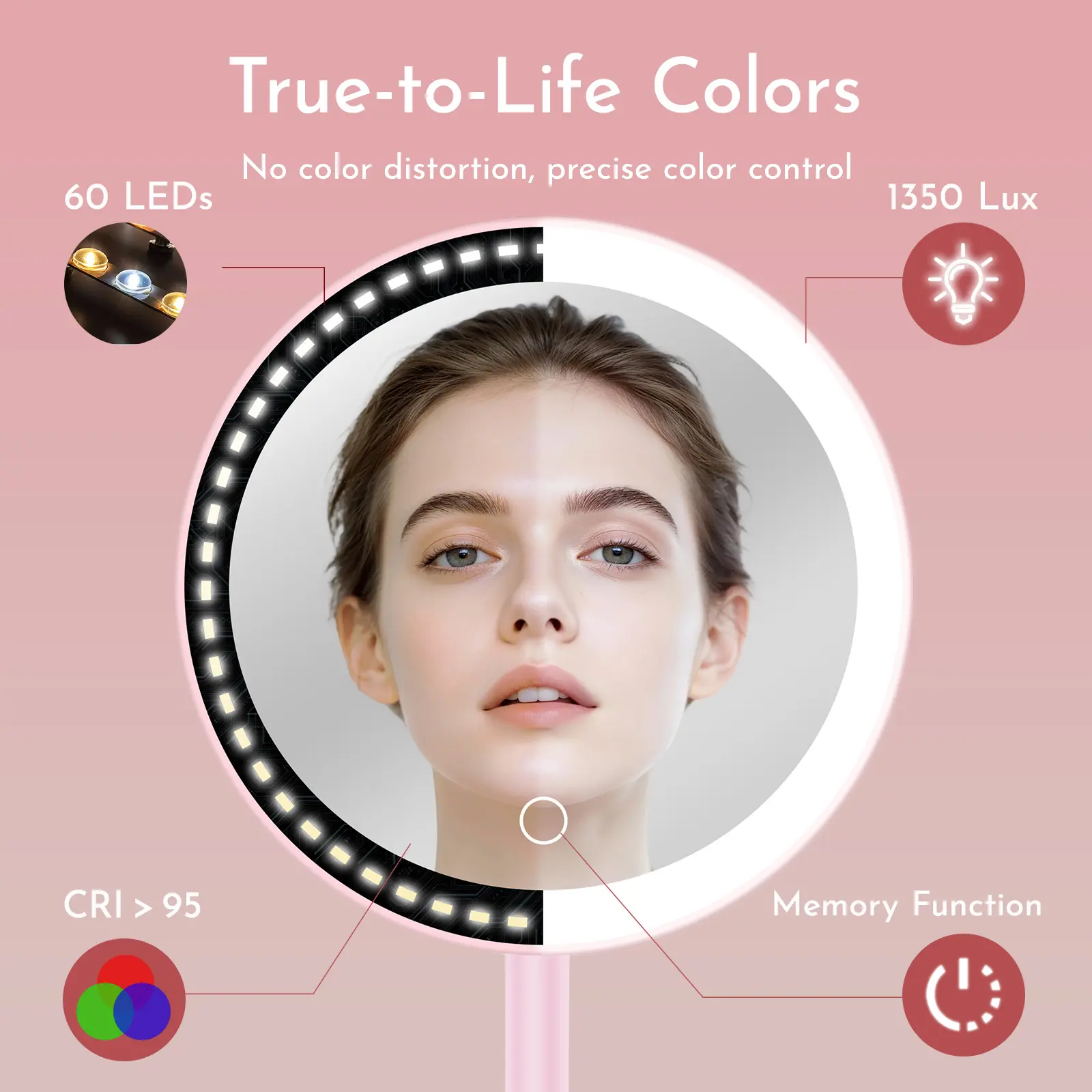 ·4-IN-1 MAGNETIC MAKEUP MIRROR WITH LIGHTS: The vanity mirror features an innovative magnetic design so the mirror head effortlessly detaches from its stand. Whether used as a desk mirror, handheld mirror, or wall-mounted mirror, it seamlessly adapts to your daily routine. Compact and portable, this pink mirror is also your perfect travel mirror option.