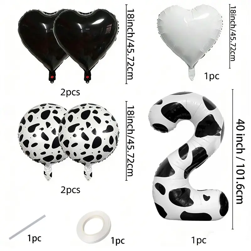 Unique Cow Print Number Heart Foil Balloons, Luxury Series Multi Shape Kit, Wedding Bridal Party Decor, Grand Event & Celebration