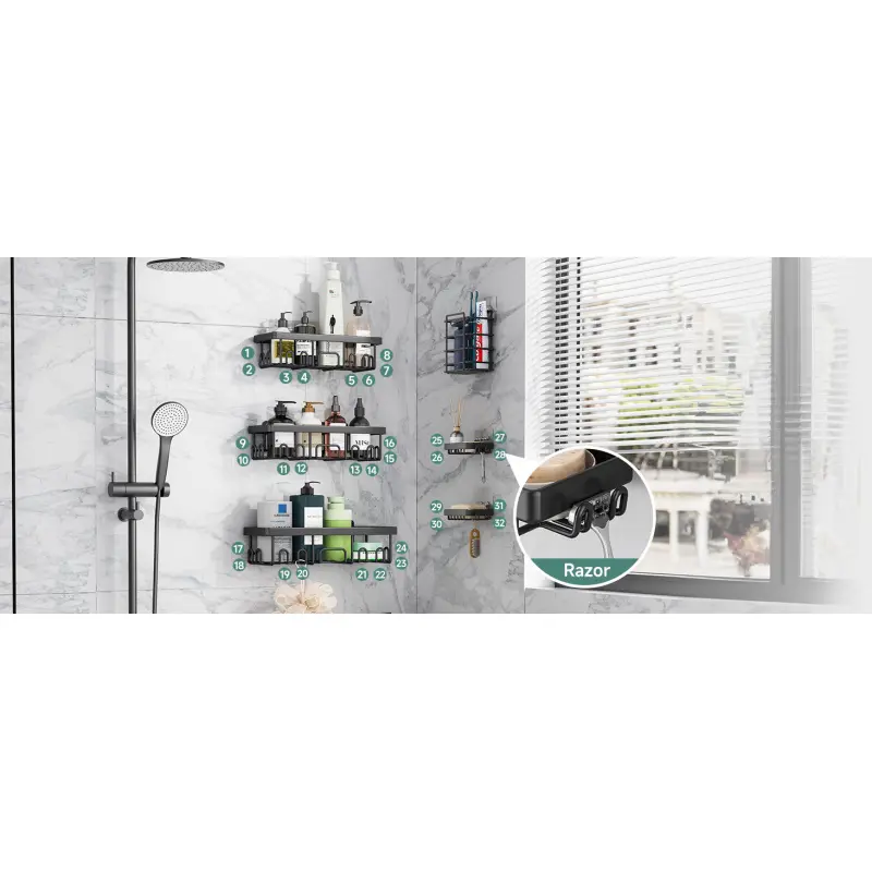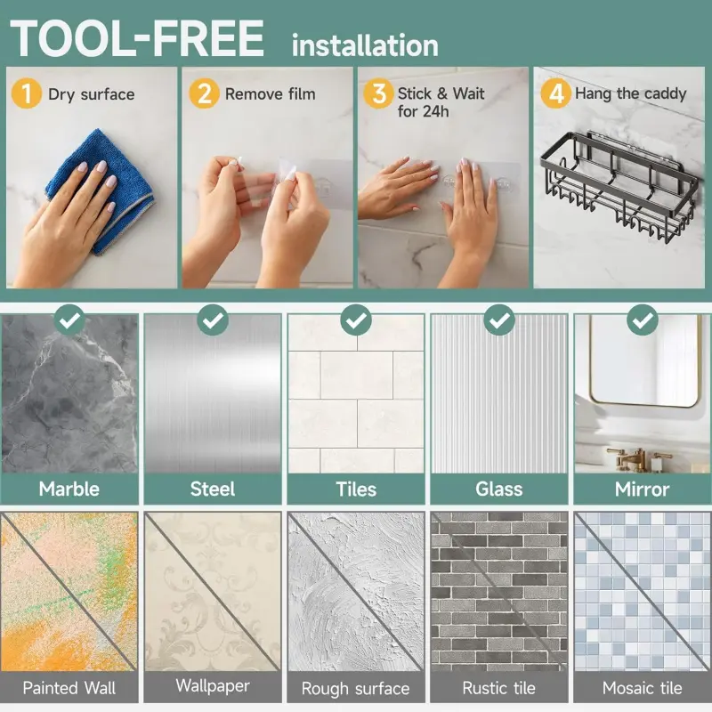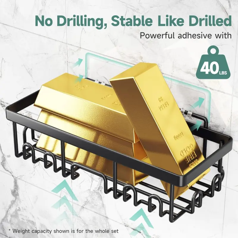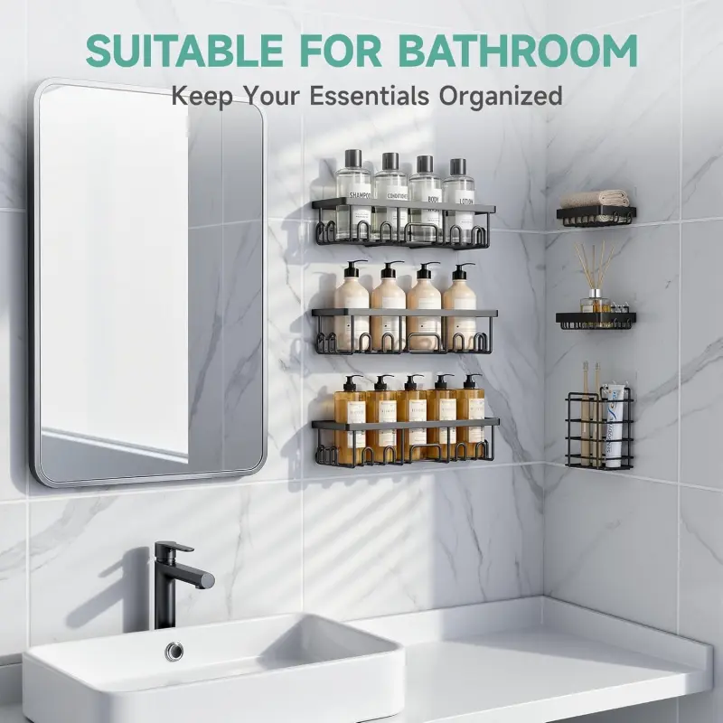Shower Caddy 6-Pack, Advanced Rustproof Design, No Drilling Adhesive Shelves, Rack with Soap Holder, Large Capacity Bathroom Organizers and Storage, Wall-Mounted Kitchen & Home Decor