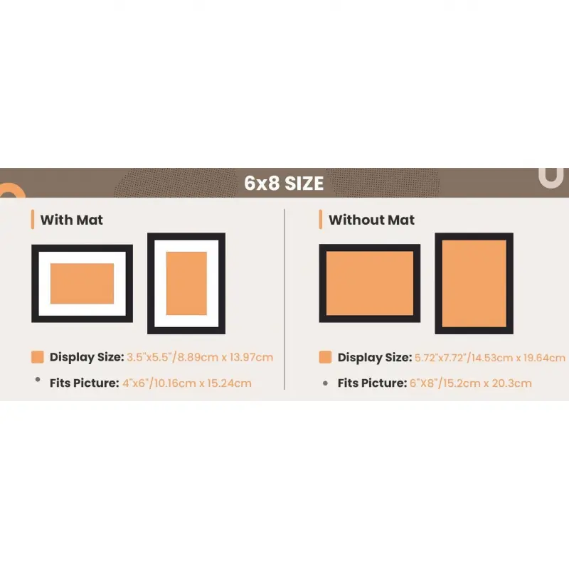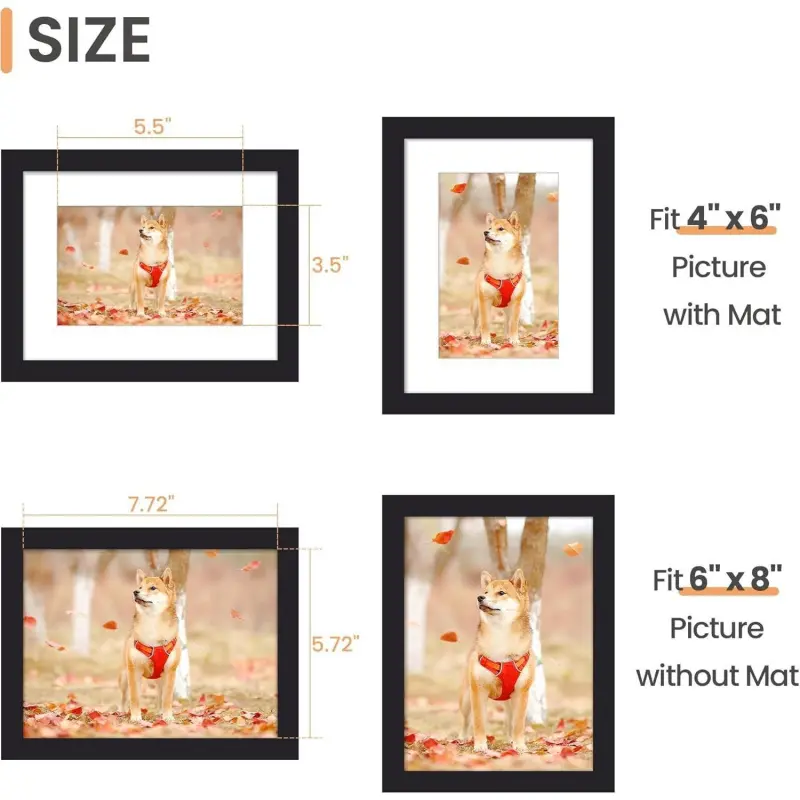 6x8 Picture Frame, Display Pictures 3.5x5.5 with Mat or 6x8 Without Mat, Wall Hanging Photo Frame, Black, 1 Pack