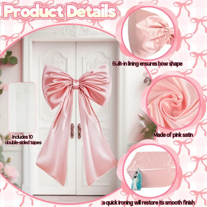 Manufacturer:FroovaManufacturer:Froova🥳Pink Satin Bowfor sophisticated girl's room decoration.This bow measures40x24 inches, andyou can use it to decorate yourdressand roomafter theparty, easily transitioning from party decoration to everyday elegance!🎀✨ 🌟What's included?🎀1 Premium Satin Bow (40" x 24")🧵Built-in structured lining to keep shape perfectly🩷10 stripsofstrong double-sided adhesive💎Why you'll love it✔️Instant shine- pre-assembled and ready to go (no tying skills required!)✔️Luxurious craftsmanship- heavy satin drapes perfectly and shines like silk✔️Durable- invisible lining means it won't sag even after months of display✔️Easy care- hand washable and ironable to keep it looking fresh as new👗Endless styling possibilities▫️Home decor: bedroom walls, stair railings, dressing tables▫️Special occasions: bridal showers🥂, bachelorette parties💃, ballerina birthdays🩰▫️Fashion accent: hair accessories, gift decorations, photo props♻️ReusableUnlike those flimsy, unsupported party decorations, this bow maintains its fluffy texture even after repeated use thanks to the support of the hidden lining - a sustainable choice for fashionistas!✨Pro Tip: -Bows are all handmade, each one has slight differences, and there may be an error of about 1cm.-Because it is made of high-end dress satin fabric, it is not as rough as polyester, so it may cause a little wrinkling during transportation, which can be restored to perfection by low-temperature ironing.Brief content visible, double tap to read full content.Full content visible, double tap to read brief content.VideosPage1 of 1Start OverPrevious pageVideos for this product0:35Exquisite handmade silk bow for events and outfitsFroova-USNext page Upload your videoManufacturer:FroovaManufacturer:Froova🥳Pink Satin Bowfor sophisticated girl's room decoration.This bow measures40x24 inches, andyou can use it to decorate yourdressand roomafter theparty, easily transitioning from party decoration to everyday elegance!🎀✨ 🌟What's included?🎀1 Premium Satin Bow (40" x 24")🧵Built-in structured lining to keep shape perfectly🩷10 stripsofstrong double-sided adhesive💎Why you'll love it✔️Instant shine- pre-assembled and ready to go (no tying skills required!)✔️Luxurious craftsmanship- heavy satin drapes perfectly and shines like silk✔️Durable- invisible lining means it won't sag even after months of display✔️Easy care- hand washable and ironable to keep it looking fresh as new👗Endless styling possibilities▫️Home decor: bedroom walls, stair railings, dressing tables▫️Special occasions: bridal showers🥂, bachelorette parties💃, ballerina birthdays🩰▫️Fashion accent: hair accessories, gift decorations, photo props♻️ReusableUnlike those flimsy, unsupported party decorations, this bow maintains its fluffy texture even after repeated use thanks to the support of the hidden lining - a sustainable choice for fashionistas!✨Pro Tip: -Bows are all handmade, each one has slight differences, and there may be an error of about 1cm.-Because it is made of high-end dress satin fabric, it is not as rough as polyester, so it may cause a little wrinkling during transportation, which can be restored to perfection by low-temperature ironing.Brief content visible, double tap to read full content.Full content visible, double tap to read brief content.VideosPage1 of 1Start OverPrevious pageVideos for this product0:35Exquisite handmade silk bow for events and outfitsFroova-USNext page Upload your videoManufacturer:FroovaManufacturer:Froova🥳Pink Satin Bowfor sophisticated girl's room decoration.This bow measures40x24 inches, andyou can use it to decorate yourdressand roomafter theparty, easily transitioning from party decoration to everyday elegance!🎀✨ 🌟What's included?🎀1 Premium Satin Bow (40" x 24")🧵Built-in structured lining to keep shape perfectly🩷10 stripsofstrong double-sided adhesive💎Why you'll love it✔️Instant shine- pre-assembled and ready to go (no tying skills required!)✔️Luxurious craftsmanship- heavy satin drapes perfectly and shines like silk✔️Durable- invisible lining means it won't sag even after months of display✔️Easy care- hand washable and ironable to keep it looking fresh as new👗Endless styling possibilities▫️Home decor: bedroom walls, stair railings, dressing tables▫️Special occasions: bridal showers🥂, bachelorette parties💃, ballerina birthdays🩰▫️Fashion accent: hair accessories, gift decorations, photo props♻️ReusableUnlike those flimsy, unsupported party decorations, this bow maintains its fluffy texture even after repeated use thanks to the support of the hidden lining - a sustainable choice for fashionistas!✨Pro Tip: -Bows are all handmade, each one has slight differences, and there may be an error of about 1cm.-Because it is made of high-end dress satin fabric, it is not as rough as polyester, so it may cause a little wrinkling during transportation, which can be restored to perfection by low-temperature ironing.Brief content visible, double tap to read full content.Full content visible, double tap to read brief content.VideosPage1 of 1Start OverPrevious pageVideos for this product0:35Exquisite handmade silk bow for events and outfitsFroova-USNext page Upload your videoManufacturer:FroovaManufacturer:Froova🥳Pink Satin Bowfor sophisticated girl's room decoration.This bow measures40x24 inches, andyou can use it to decorate yourdressand roomafter theparty, easily transitioning from party decoration to everyday elegance!🎀✨ 🌟What's included?🎀1 Premium Satin Bow (40" x 24")🧵Built-in structured lining to keep shape perfectly🩷10 stripsofstrong double-sided adhesive💎Why you'll love it✔️Instant shine- pre-assembled and ready to go (no tying skills required!)✔️Luxurious craftsmanship- heavy satin drapes perfectly and shines like silk✔️Durable- in