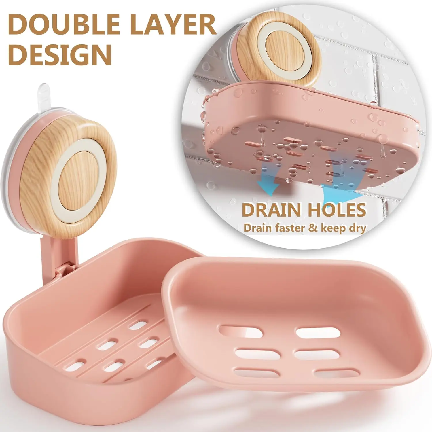 ·DOUBLE STABILITY DESIGN: Our shower soap holder is based on the principle of biomimetic octopus suction cup, upgraded with super strong adhesive soft silicone, which improves the stability of the suction cup by 100%. The bar soap holder for shower is made of high-quality and thickened ABS material, which is waterproof and oil resistant