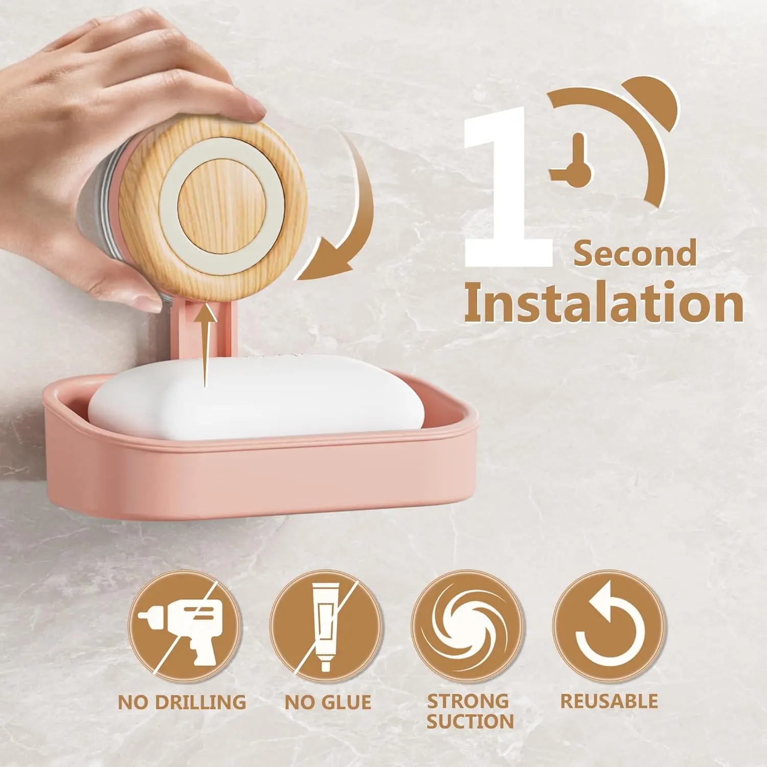 ·DAMAGE-FREE INSTALLATION: Simply rotate the suction cup vertically and clockwise tightly, without drilling holes, screws, glue or any tools, and install the bathroom soap holder in one second When disassembling the soap dish for shower: simply rotate the suction cup counterclockwise and insert a credit card into the gap, leaving no glue or residue on the wall