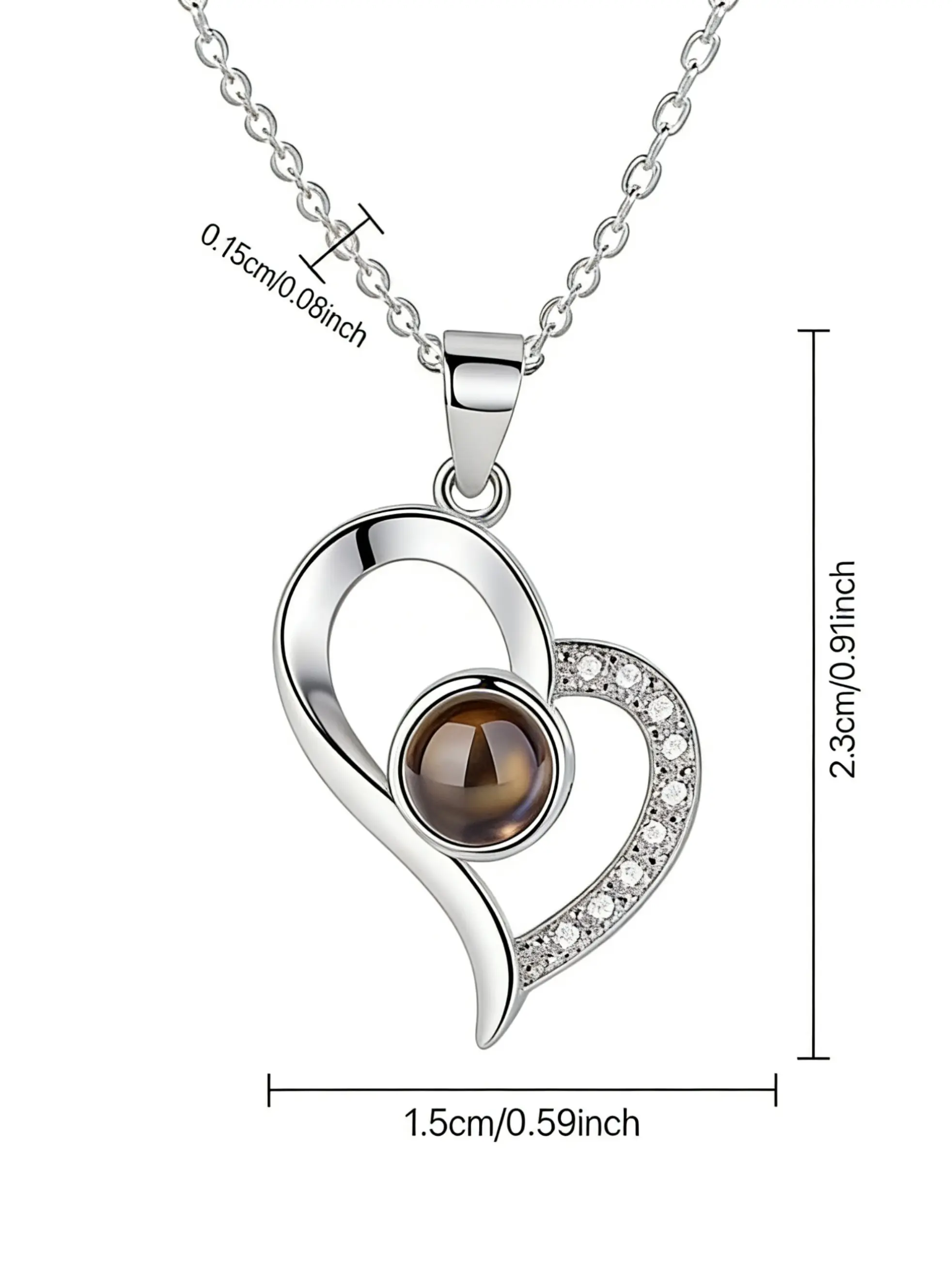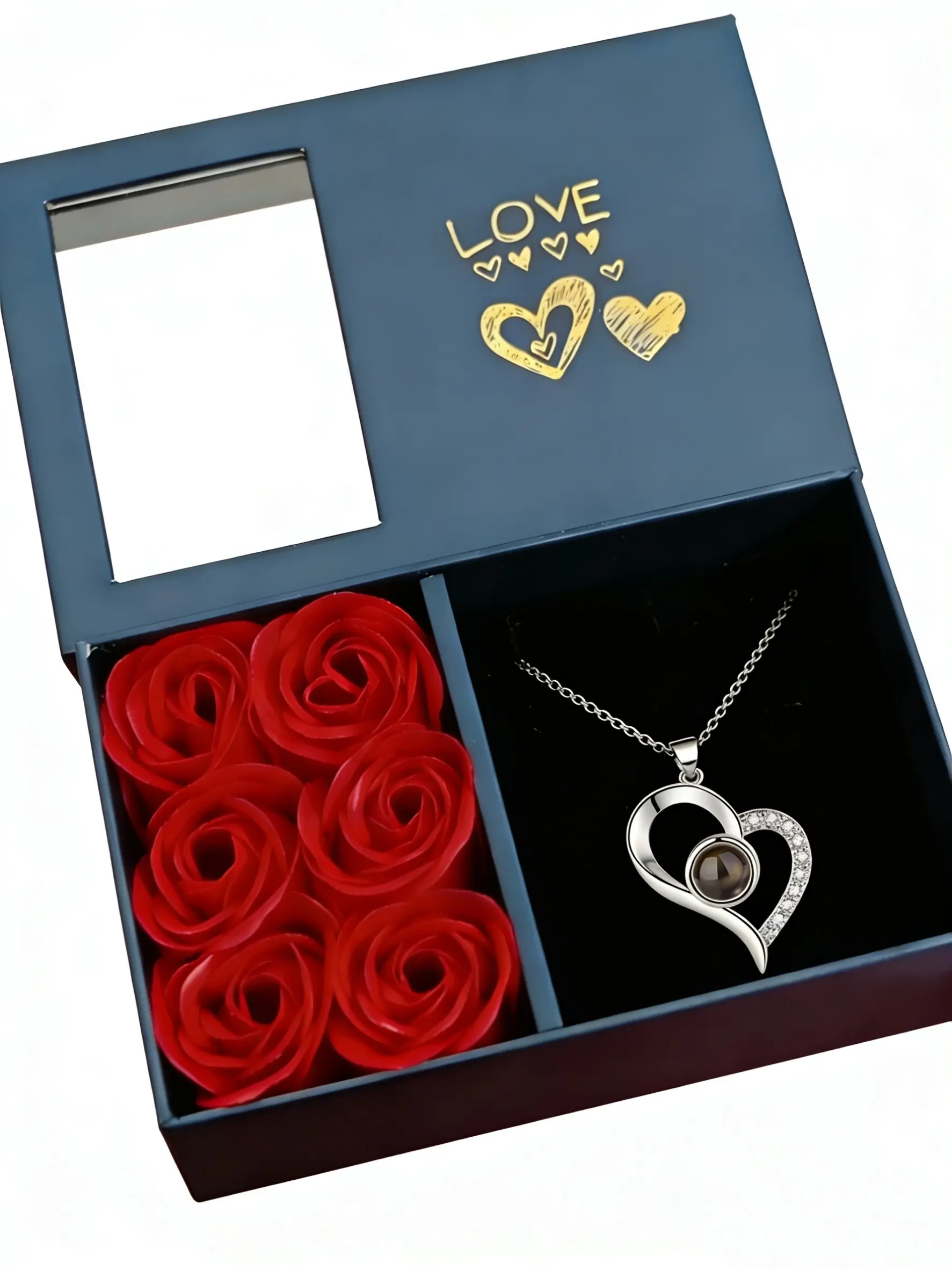 Heart Projection Necklace, Love Heart Pendant, 100 Languages I Love You, Eternal Rose Flower, Mother's Day, Valentine's Day, Gift Box