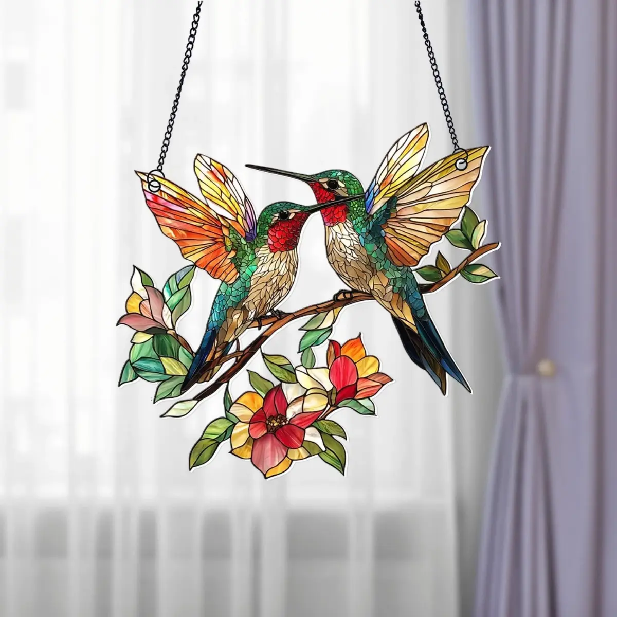 5. Hummingbird Flower Acrylic window hanging, Bird Suncatcher
