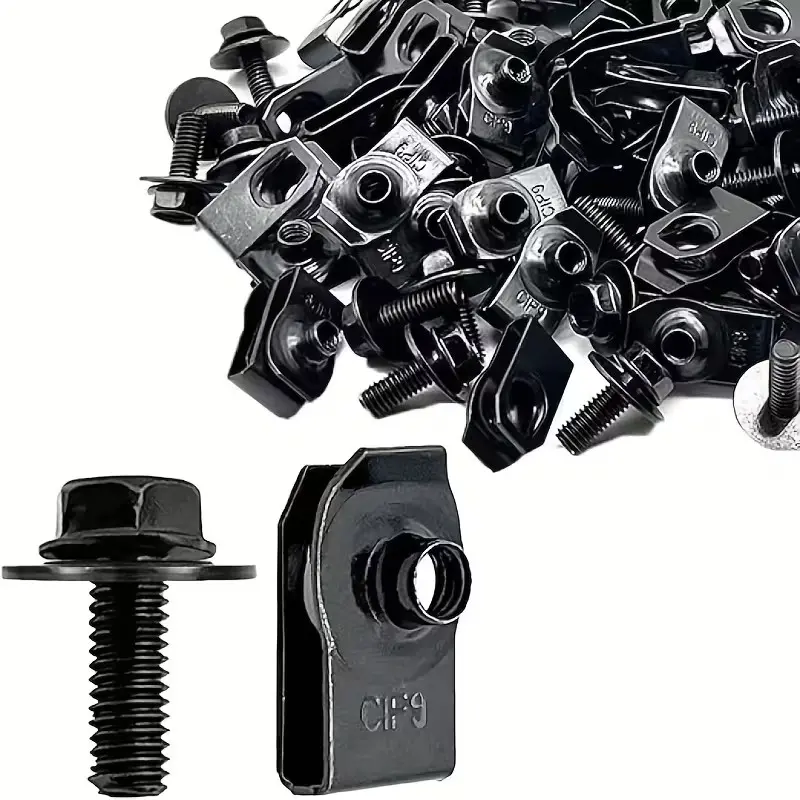 30pcs Automotive Bolts & U-Shaped Washer Clips, Engine Radiator Guard Rivets, Bumper Anti-Collision Clips, Fender Retaining Buckles