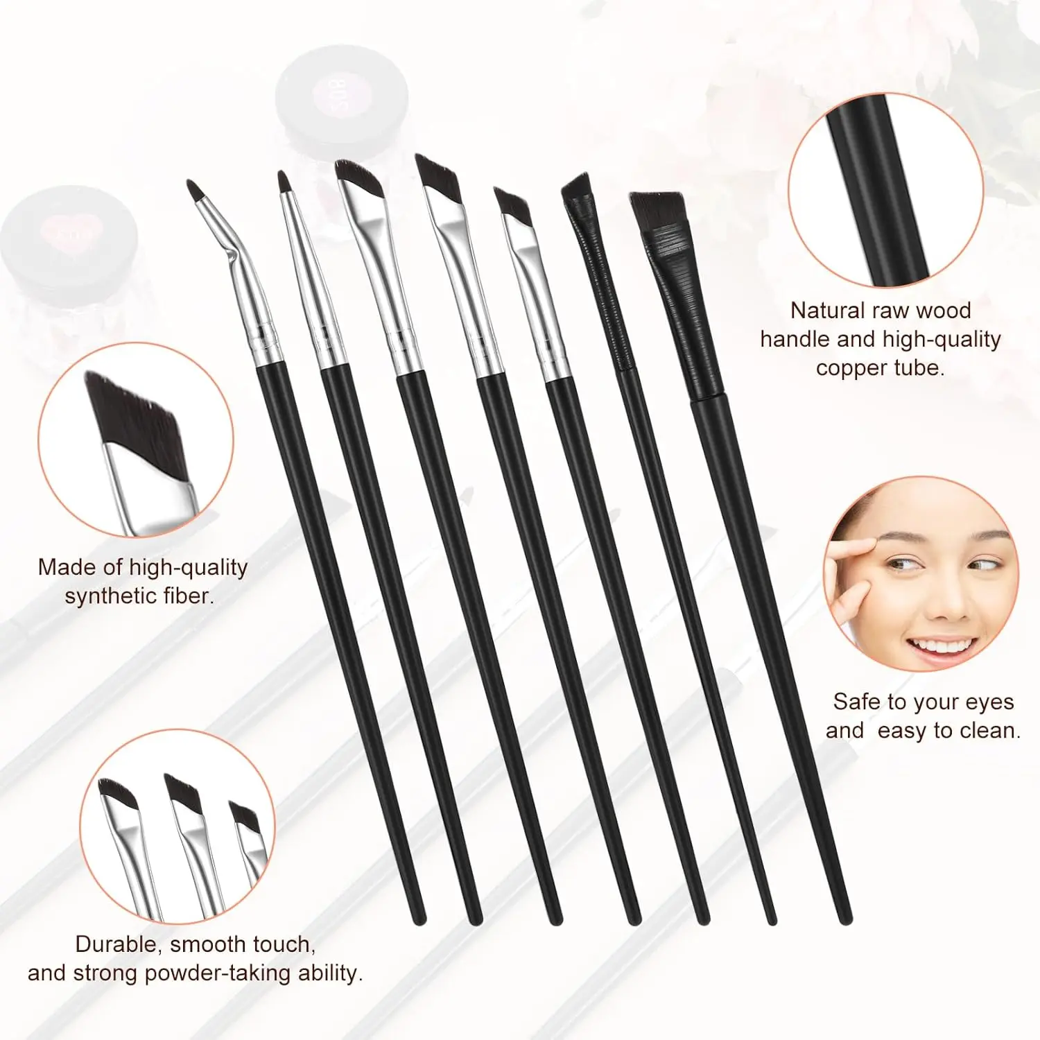 This set includes 7 ultra-thin eyeliner brushes, ideal for women. Each brush is designed for precision, making it perfect for eyeliner and eyebrow applications. The angled tips allow for detailed work, ensuring a flawless finish. Ideal for concealing and defining eyebrows, these brushes are versatile tools for your makeup routine.