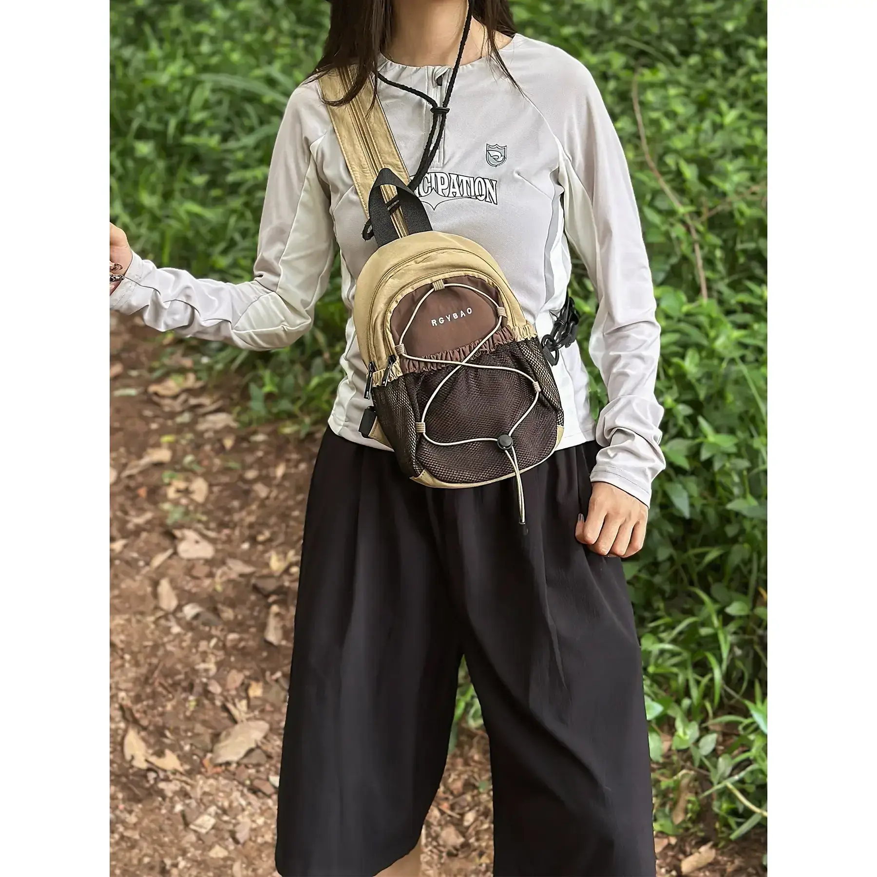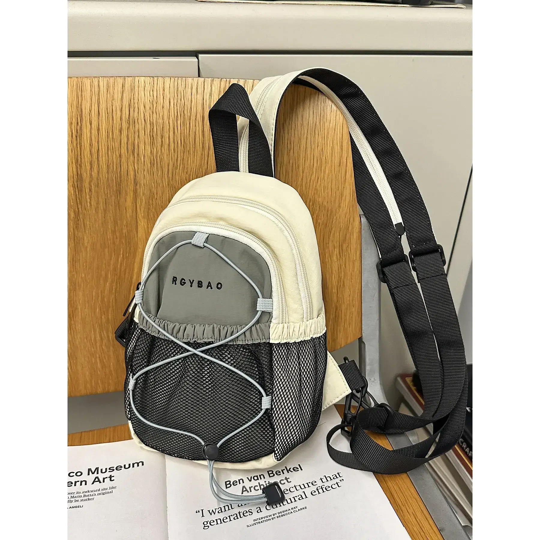 Leisure backpack, color blocked backpack, drawstring zipper closure, fashionable and versatile, simple and trendy chest bag suitable for students, campus work, commuting, shopping, men's and women's backpacks, Commuter Backpack
