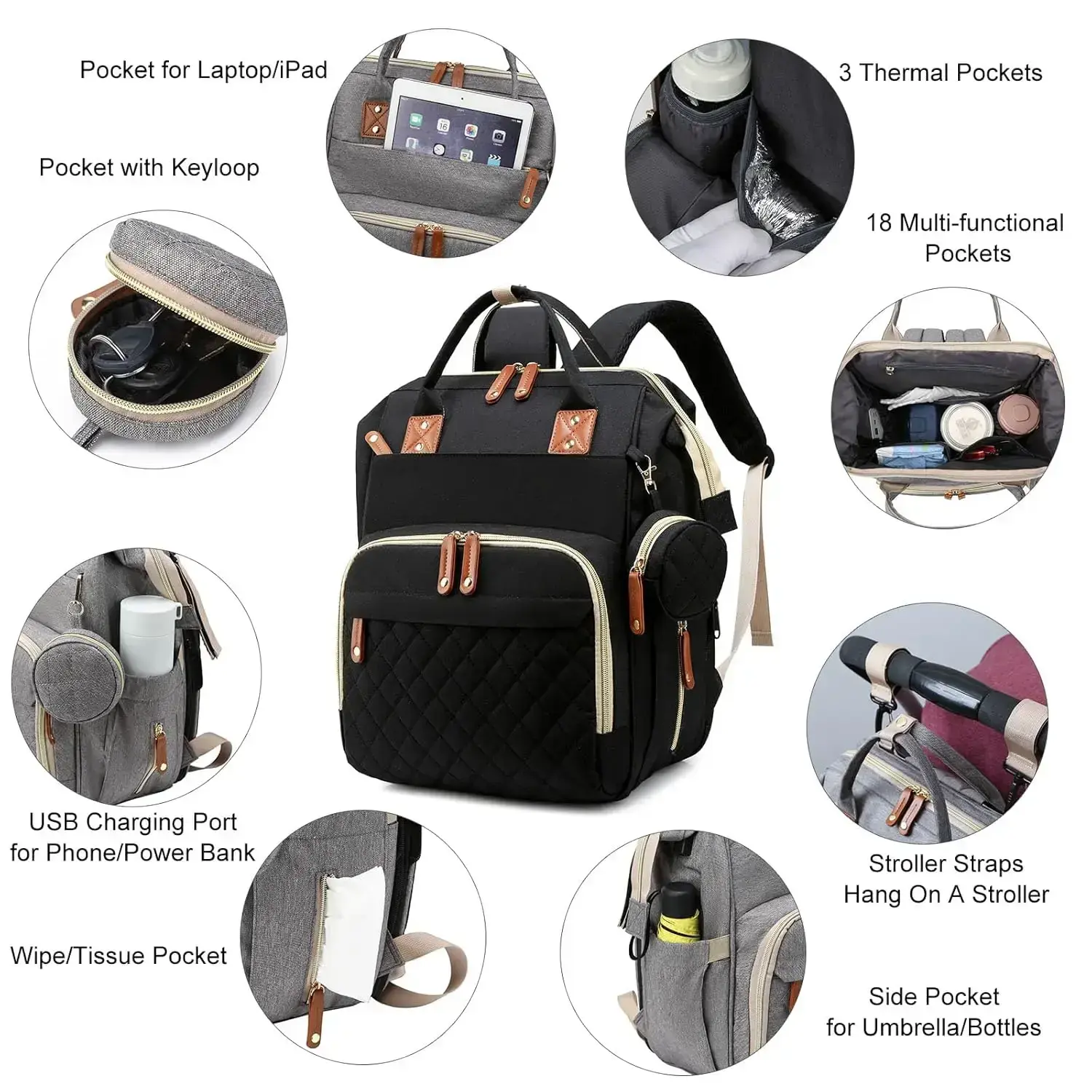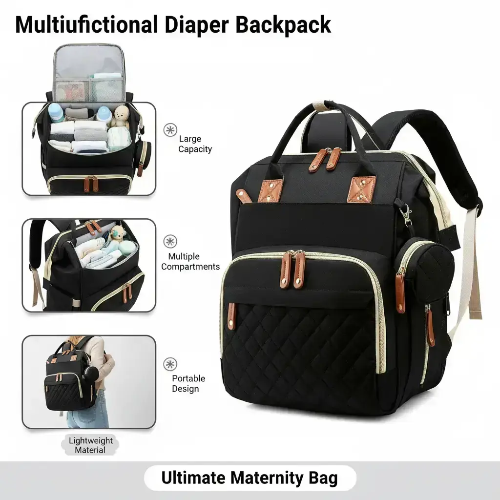 【Generous Capacity】: Accommodates all essentials with its spacious interior, perfect for organizing baby supplies and personal items. 【Multiple Compartments】: Features several compartments that ensure easy organization, allowing quick access to items when needed. 【Portable Backpack】: Designed as a lightweight backpack, making it convenient for mothers on the go, especially during outings. 【Durable Material】: Constructed from high-quality materials to withstand daily use, ensuring longevity and reliability for users. 【Functional Use】: Multifunctional design caters to different needs, serving as a storage solution for both mother and baby essentials.