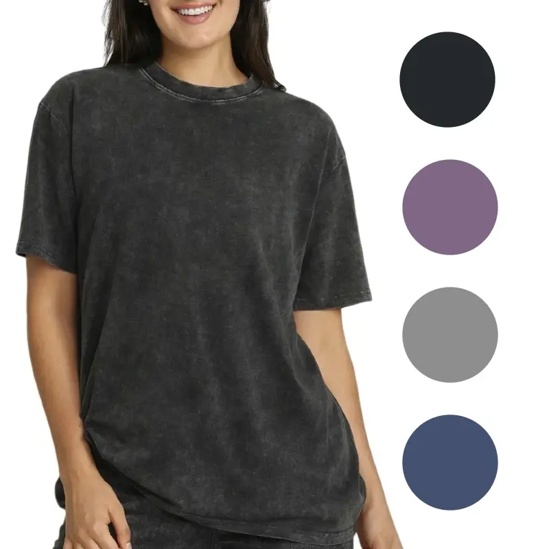 Women's Washed Oversized Short Sleeve T-Shirt Casual Vintage Acid Wash Loose Basic Tee