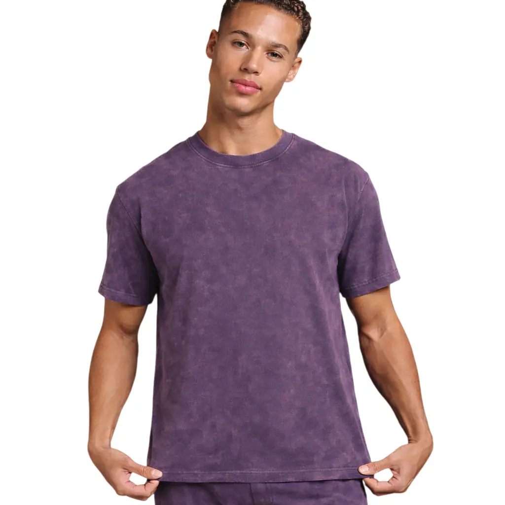 This t-shirt offers a comfortable, soft fabric that ensures a flattering fit. Perfect for casual streetwear, it features a vintage washed purple color. The acid wash crew neck and short sleeves add a minimalist style. Ideal for those seeking a solid color, this tee is a versatile addition to any wardrobe.