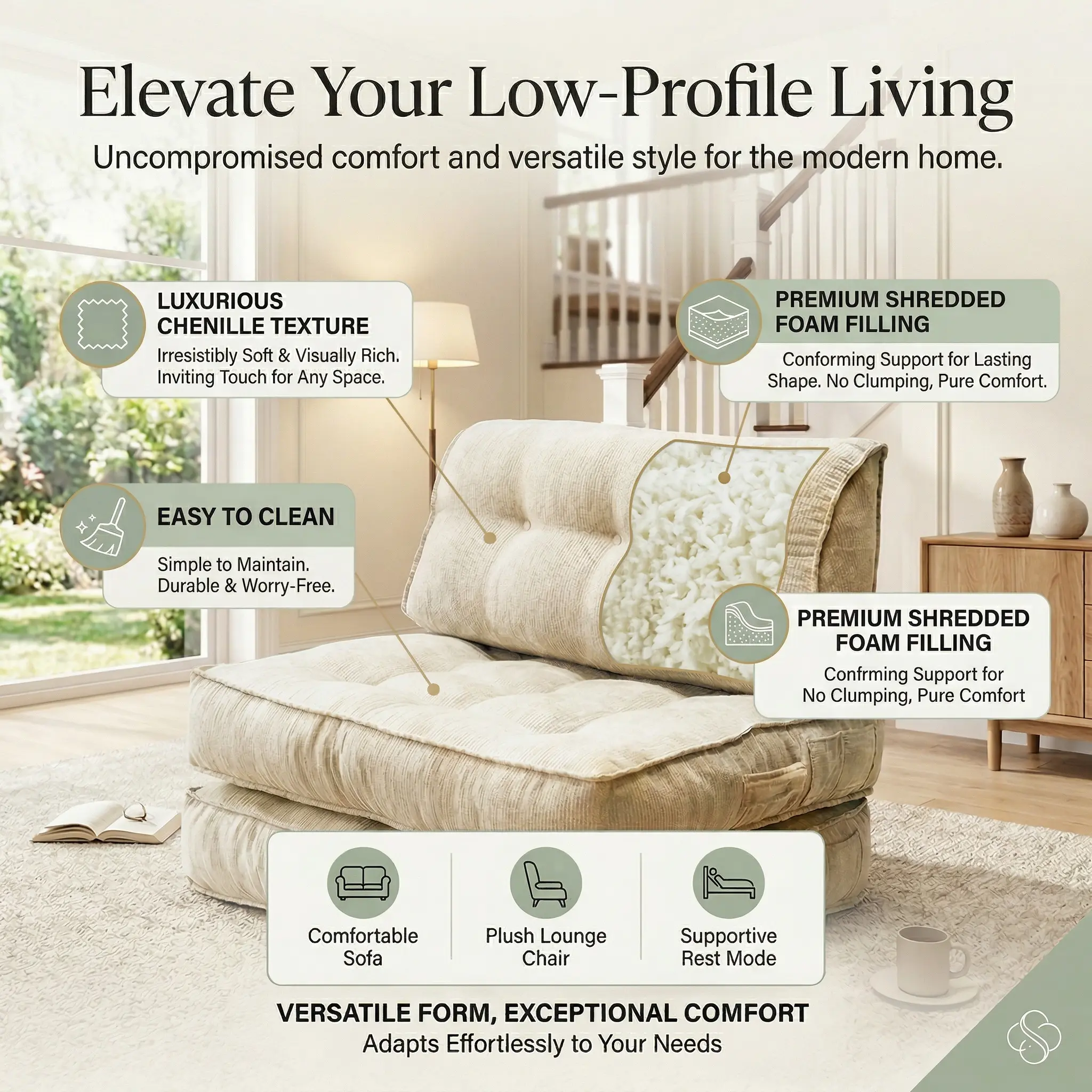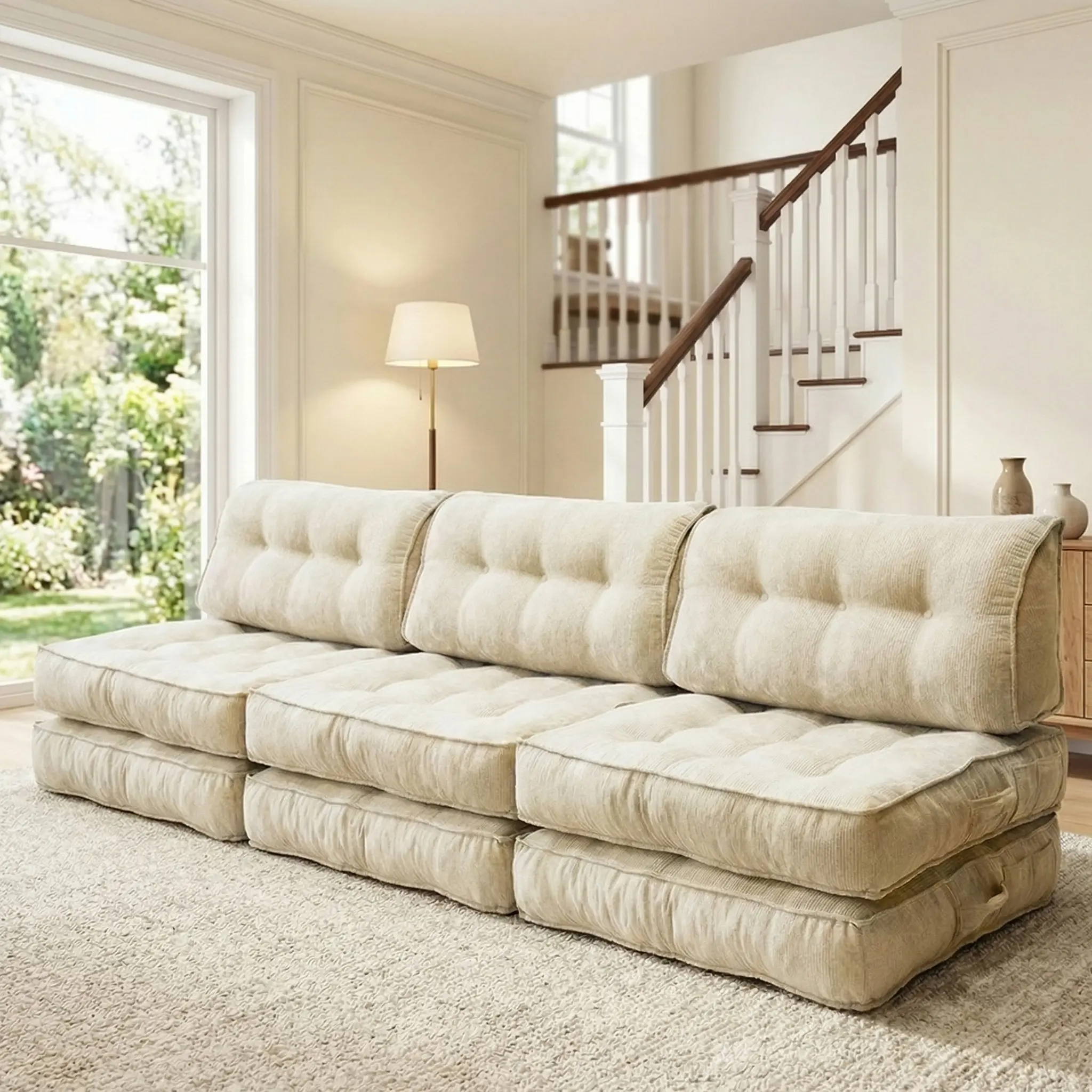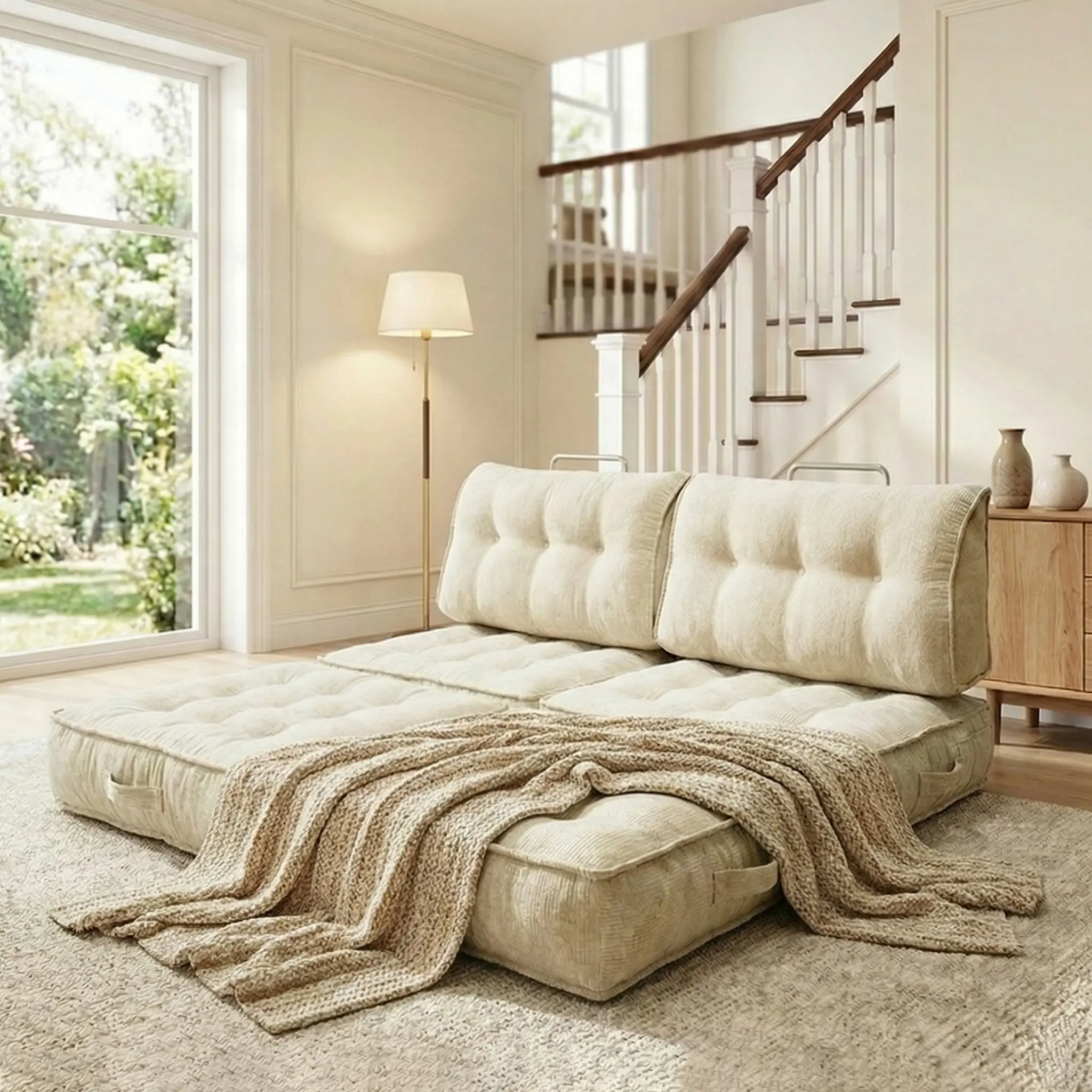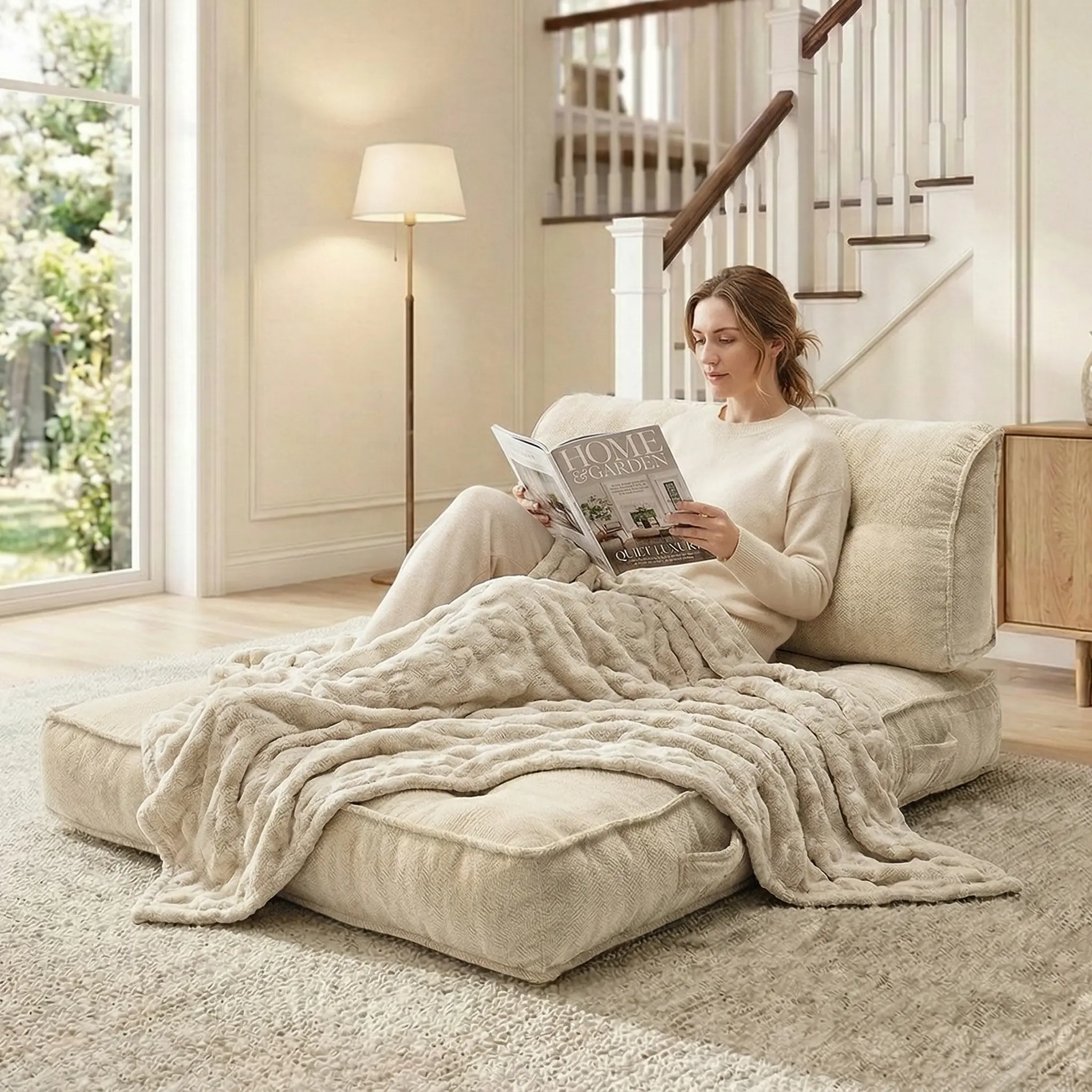 Single lazy sofa, small folding sofa bed with soft package for deep seat wrapping, boneless sofa in living room and bedroom, no need for assembly