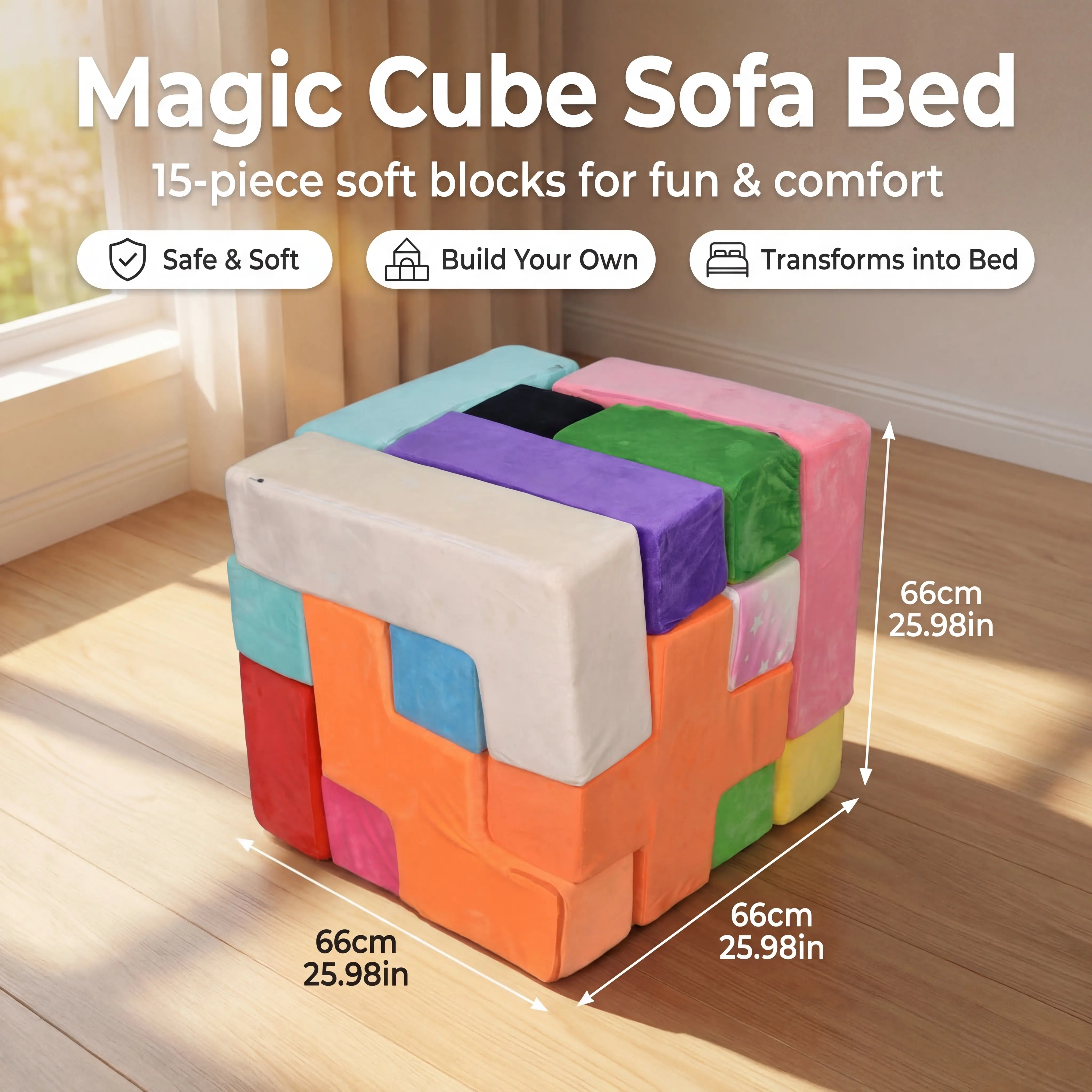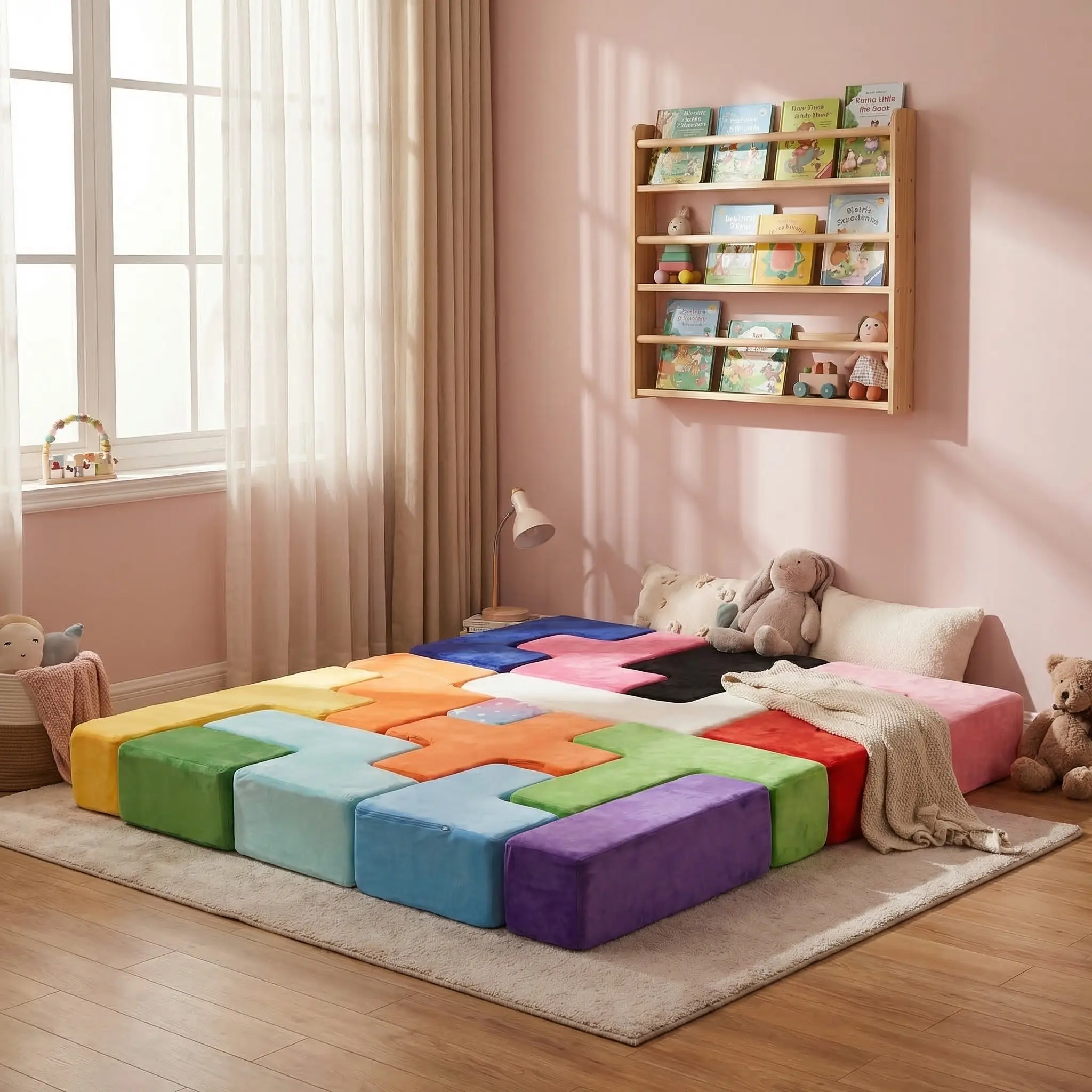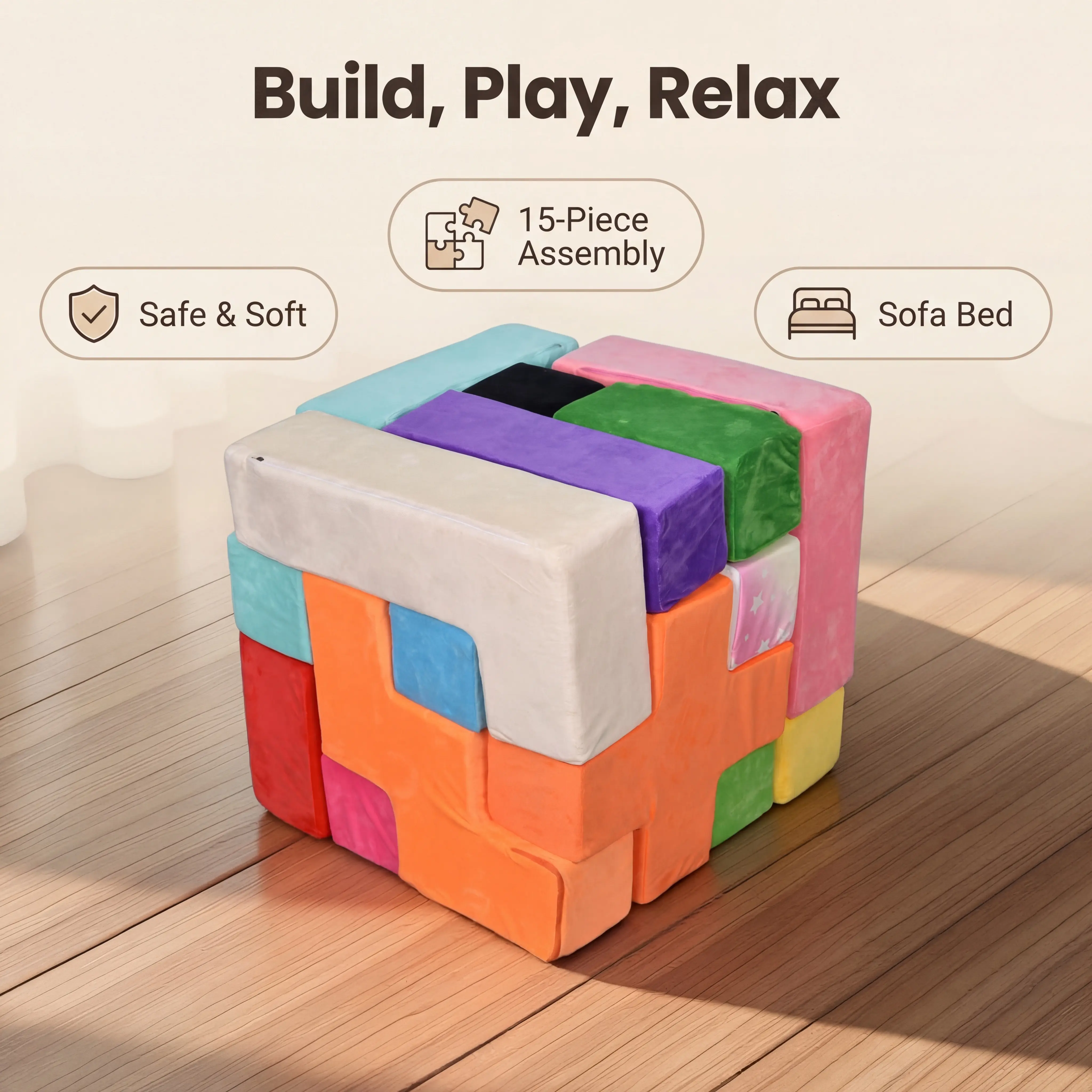 Modular Play Couch, Convertible Kids Sofa to Toddler Lounge Bed, Block Splicing Foam Furniture for 3+ Years Old, Comfy Children Couch for Christmas & Birthday Gifts