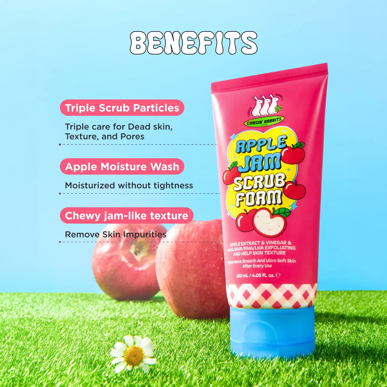 | Ingredients | GLYCERIN, WATER, SODIUM COCOYL ISETHIONATE, CELLULOSE, COCONUT ACID, 1,2-HEXANEDIOL, SODIUM COCOYL GLYCINATE, SODIUM METHYL COCOYL TAURATE, HYDROXYPROPYL STARCH PHOSPHATE, SORBITOL, SODIUM ISETHIONATE, CITRIC ACID, BETAINE, GLYCERYL STEARATE, SODIUM CHLORIDE, PYRUS MALUS (APPLE) FRUIT EXTRACT, CAPRYLYL GLYCOL, ETHYLHEXYLGLYCERIN, FRAGRANCE, PHASEOLUS RADIATUS SEED POWDER, PYRUS MALUS (APPLE) FIBER, XANTHAN GUM, BUTYLENE GLYCOL, DISODIUM EDTA, SODIUM COCOYL APPLE AMINO ACIDS, COPTIS JAPONICA ROOT EXTRACT, MALT EXTRACT, HEXYLENE GLYCOL, CAPRYLOYL SALICYLIC ACID, GLUCONOLACTONE, SALICYLIC ACID, PROPANEDIOL, TETRASODIUM EDTA, XYLITYLGLUCOSIDE, ANHYDROXYLITOL, VINEGAR, XYLITOL, ANANAS SATIVUS (PINEAPPLE) FRUIT EXTRACT, GLUCOSE, CITRUS UNSHIU PEEL EXTRACT, CARICA PAPAYA (PAPAYA) FRUIT EXTRACT, CHAMOMILLA RECUTITA (MATRICARIA) FLOWER EXTRACT, ANTHEMIS NOBILIS FLOWER EXTRACT, CALENDULA OFFICINALIS FLOWER EXTRACT, HIBISCUS SABDARIFFA FLOWER EXTRACT, LAVANDULA ANGUSTIFOLIA (LAVENDER) FLOWER EXTRACT, MENTHA ARVENSIS LEAF EXTRACT, ROSMARINUS OFFICINALIS (ROSEMARY) FLOWER EXTRACT, SALVIA OFFICINALIS (SAGE) LEAF EXTRACT, GUAIAZULENE |
