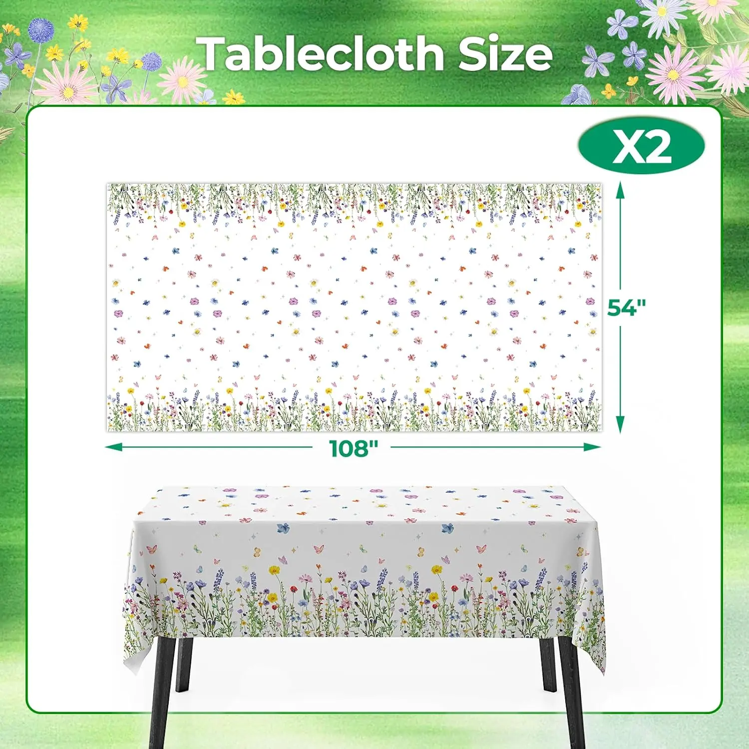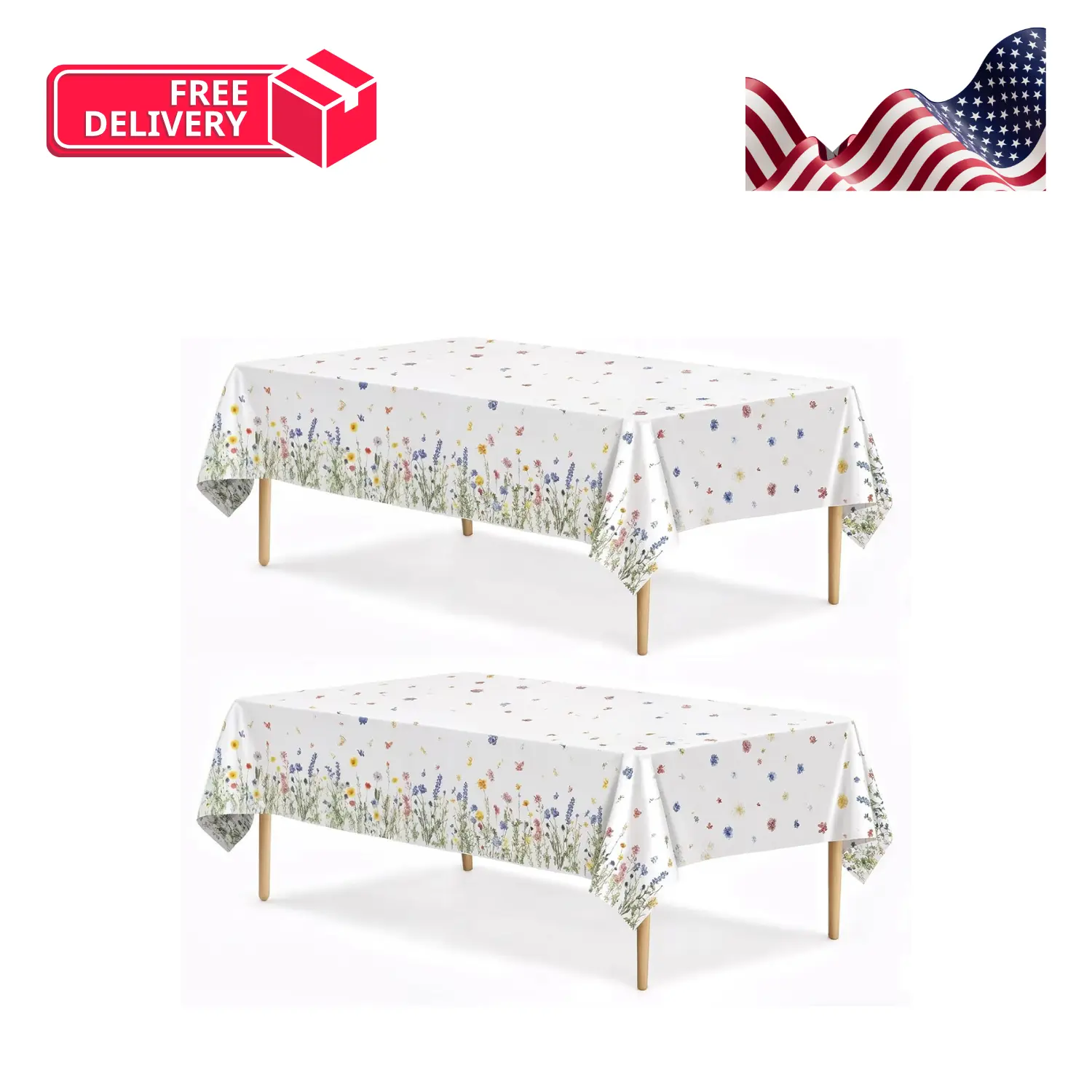Spring Floral Party Tablecloth, 2 Pack Wildflower 54 x 108 Inch