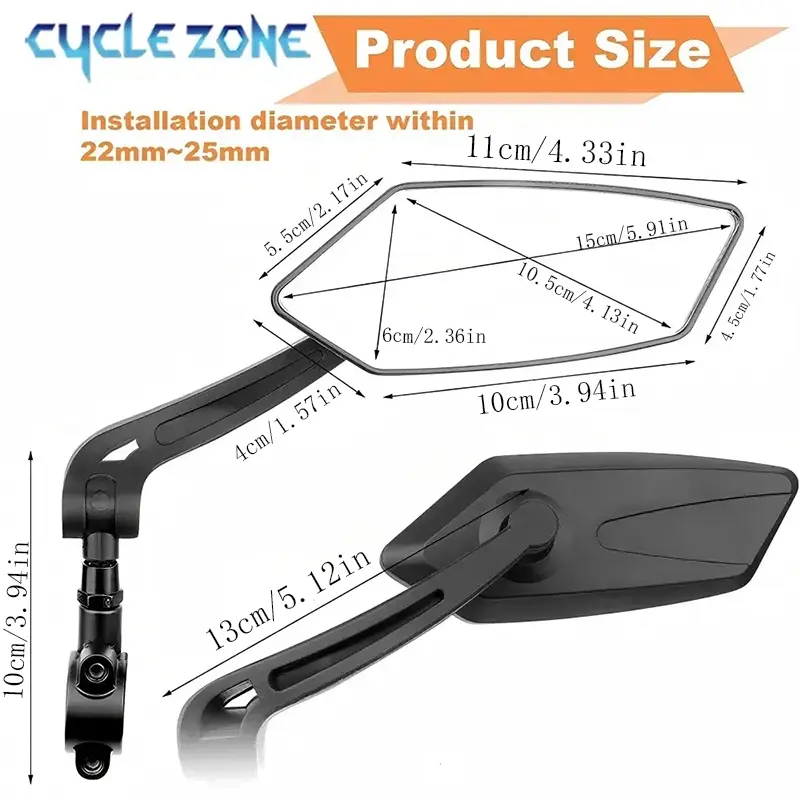 5. Bicycle Rear View Mirror Bike Cycling Clear Wide Range Back Sight Rearview Reflector Adjustable Handlebar Left Right Mirror