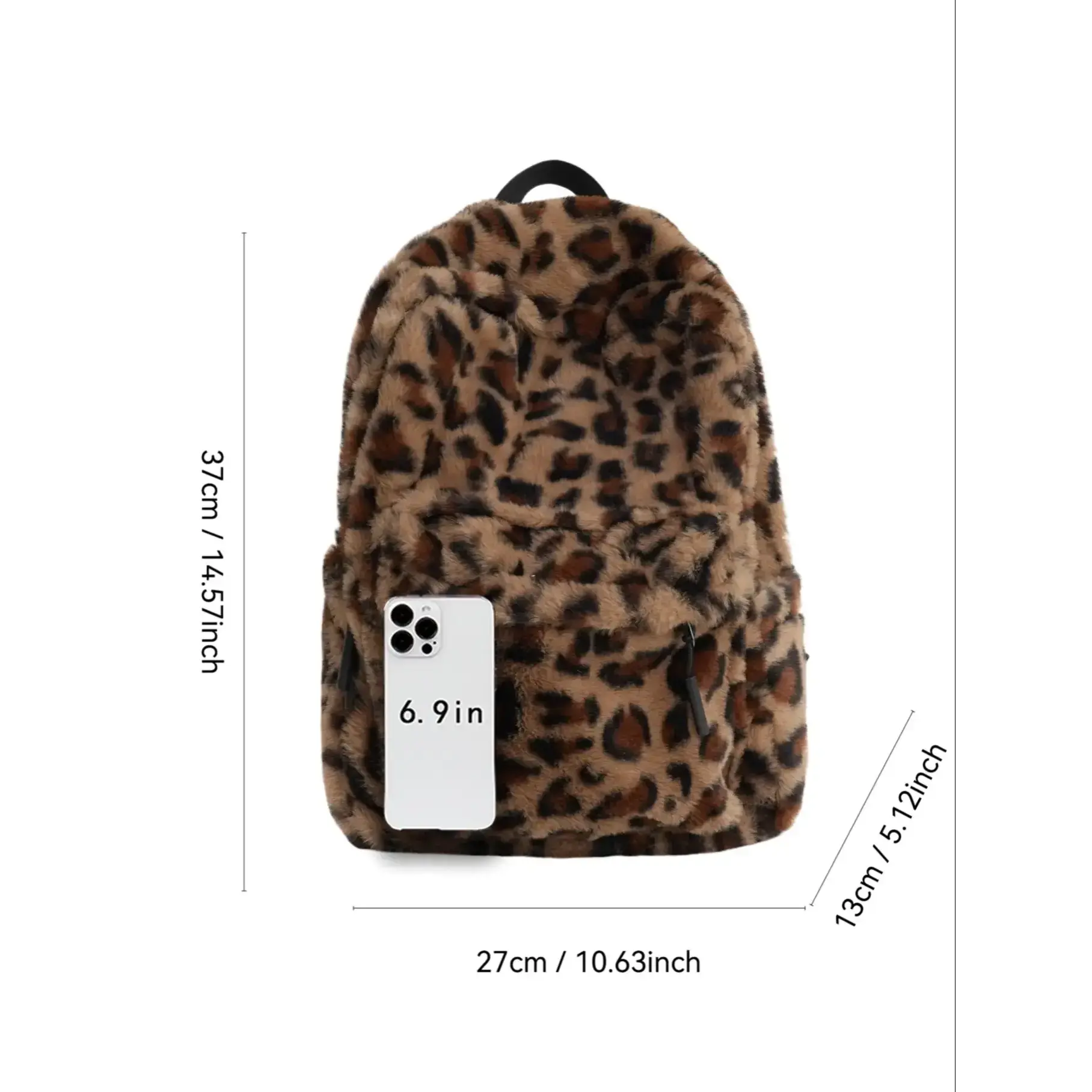 [Bag Odor Tips & Deodorizing Tips]Dear customers, new bags may have a slight natural odor from the raw materials (such as the natural smell of leather or fabric, or a slightodor from sealed storage after production). This is normal. To quickly remove odors. try this:Upon receipt, unzip your bag, open the pockets, and place it in a cool, well-ventlated area to alr for 1-2 days (avold direct sunlight as thiswill damage the fabric and hardware). if the odor is noticeable, place a small bag of tea leaves or dried fowers in the bag while it alrs to help absorb the odor. 【Leopard Pattern】: Features a unique leopard pattern, adding a bold and distinctive flair to your everyday backpack collection. 【Large Capacity】: Offers ample storage space for books and personal items, making it practical for school and daily use. 【Seasonal Versatility】: Designed for fall and winter use, providing a chic accessory that aligns with the seasonal trends. 【Comfortable Fit】: Equipped with adjustable straps, ensuring a secure and comfortable fit for daily wear and transportation. 【Multi-functional Use】: Suitable for various activities, including commuting, school, and travel, enhancing its practical applications.