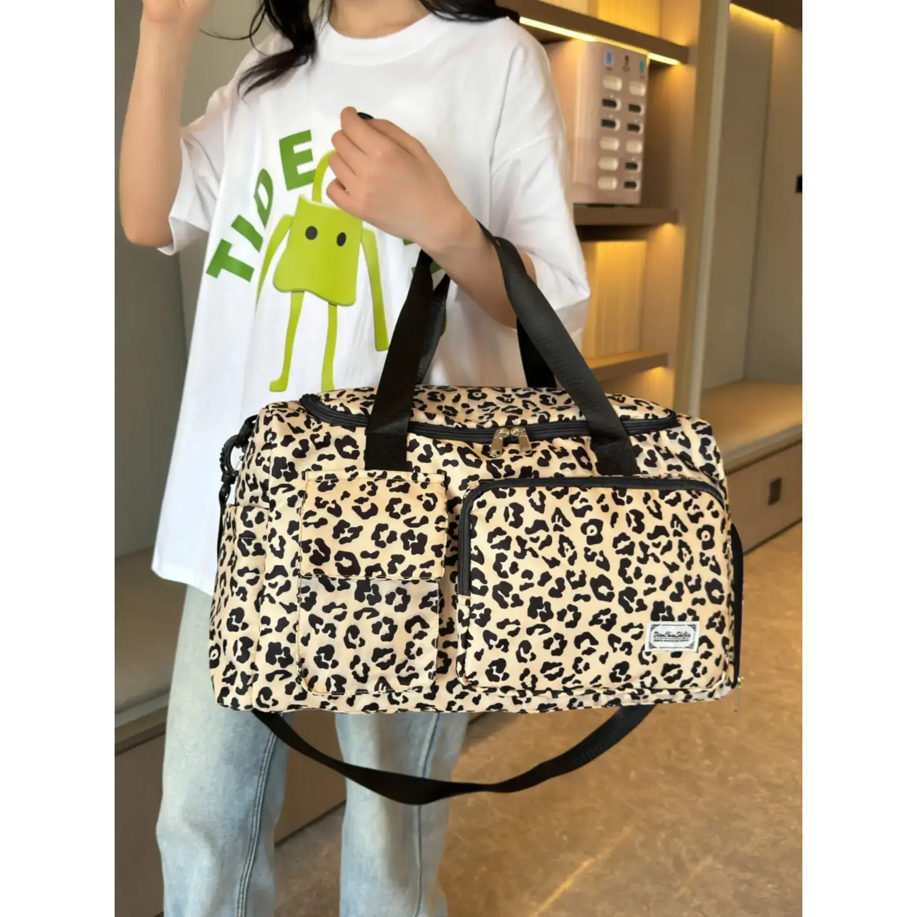 New Leopard Print Large Capacity Travel Shoulder Bag, Vintage Casual Fashion Short Trip Backpack, Sports Gym Bag, Lightweight Weekender Bag for Women & Men