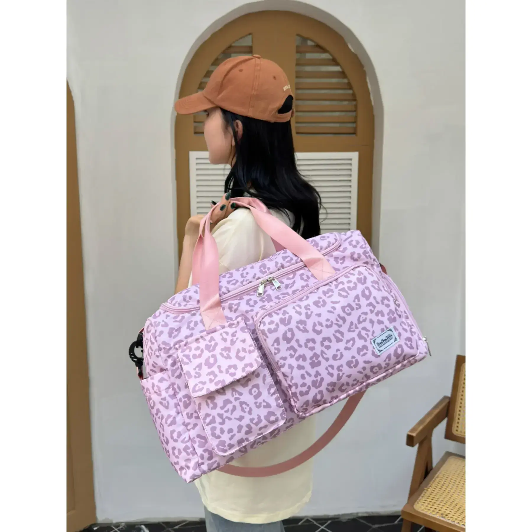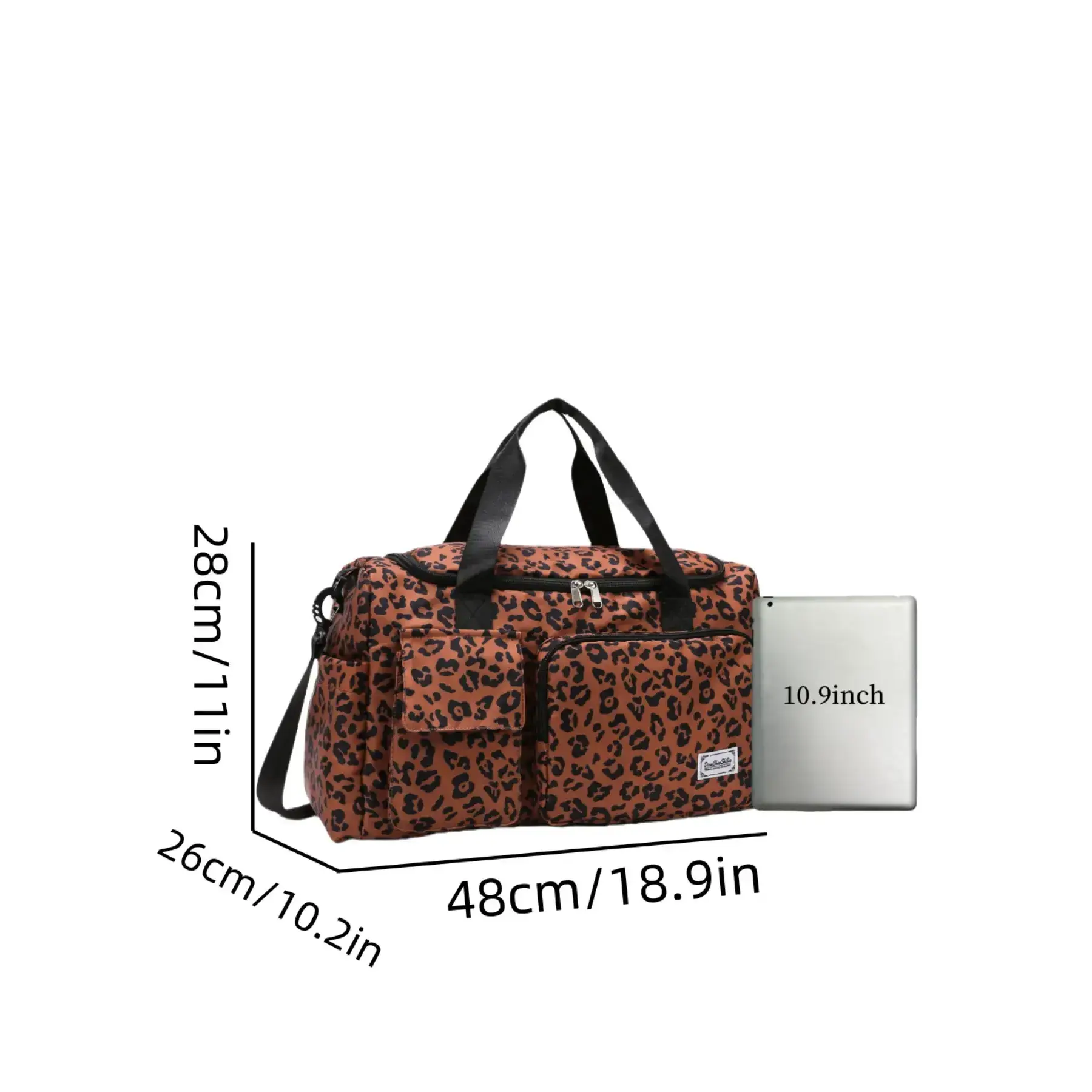 【Large Capacity】: This travel shoulder bag boasts a spacious interior, accommodating all your essentials for short trips and workouts. 【Distinctive Leopard Print】: Features a striking leopard pattern that sets it apart from standard duffel bags, adding a unique flair. 【All-Season Use】: Constructed to be functional in any season, making it a reliable companion for year-round travel and activities. 【Durable Fabric】: Made from high-quality bag fabric, ensuring longevity and resilience, suitable for both travel and gym use. 【Weekender Design】: Offers a practical weekender shape with a single shoulder strap, allowing for easy carrying and accessibility.