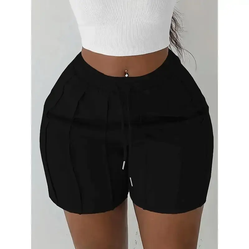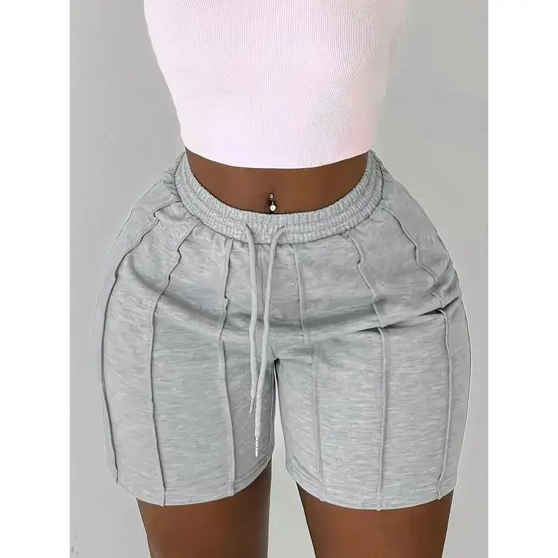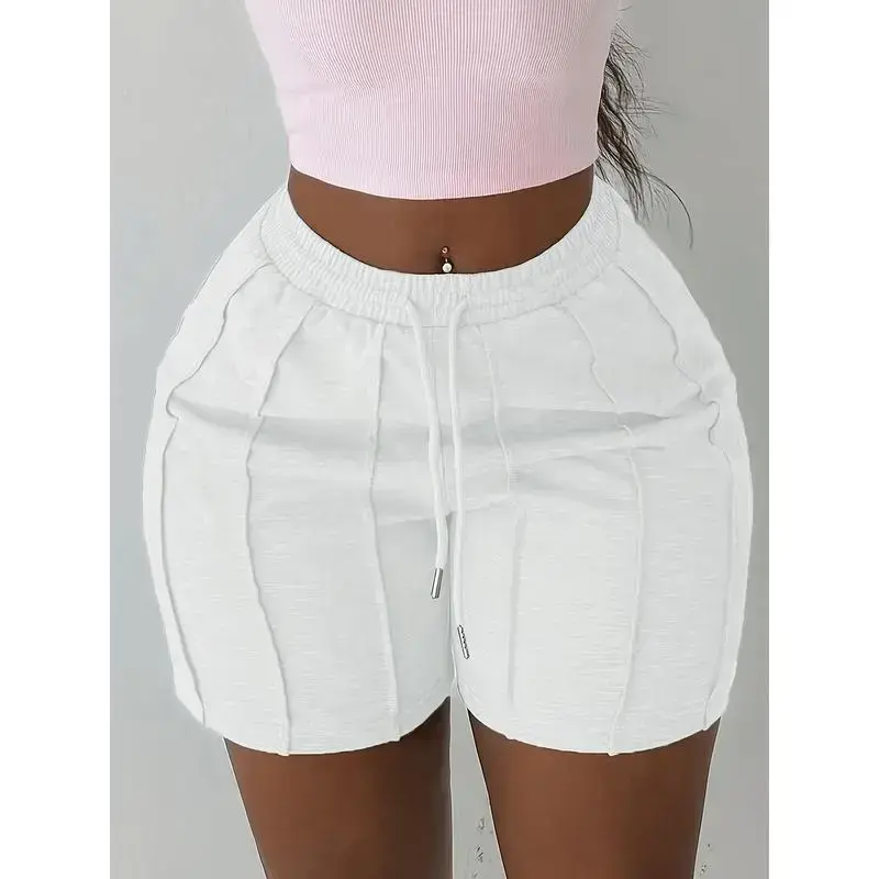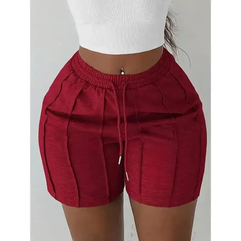 4-Pack Women'S Casual Elastic Waist Drawstring Shorts with Side Pockets - Solid Color Lounge Shorts for Spring Summer Fall, Machine Washable (Black/White/Red/Grey), Seasonal Clothing, Modern Design, Comfortable Fit