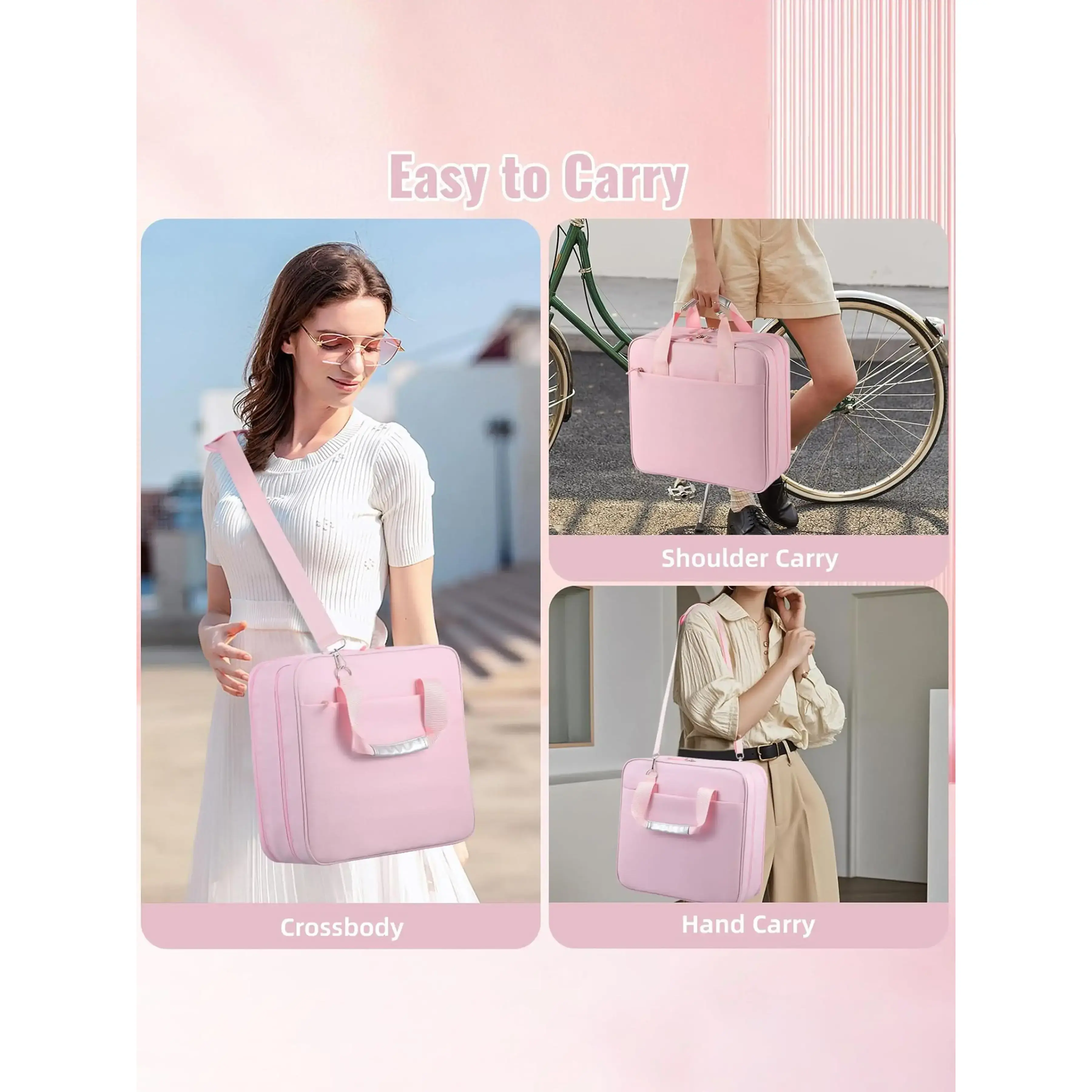 Spacious Main Pocket: A detachable 3-ring 2-inch O-ring that holds up to 500 sheets, two compartments for 13-Inch tablet or book, 12 pen holders for pens, pencils and highlighters, two mesh pockets for cards and sticky notes. With these multi-pockets, the zip up binder can keep everything neatly organized in one place. Two Outside Zipper Pockets: One zipper pocket is equipped with an accordion file folder with 10 compartments for sorting out documents or study materials. And the other is designed for phones, calculators and other items. this zip binder allows for easy categorization. Say goodbye to clutter and hello to efficiency. Durable and Stylish: The document bag is made of high-quality Oxford fabric, that is a water-resistant and scratch-resistant material to withstand daily wear and tear. Its cute and pretty make you look good while staying organized. Convenient Portability: With an adjustable shoulder strap and a sturdy handle, this zip up binders 3 ring is easy to carry wherever you go. Whether you’re heading to class, the office, or a meeting, take your essentials effortlessly. Multi-functional Binder : Ideal for students, teachers, and professionals, our zipper binder is a versatile storage solution that meets all your organizational needs. Plus, the binder with zipper is a great gift for anyone who values neatness and efficiency!