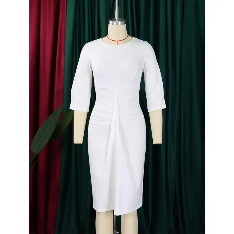 🎀 Elegant Royal Blue 3/4 Sleeve Bodycon Midi Dress for Women 🎀 This vintage ruffle detail dress is crafted from stretch polyester fabric. Perfect for work or church, it offers a formal chic look. Available in white, blue, pink, and red. Sizes range from S to XXL. Ideal for versatile occasions. 📌 Key Features: 🎁 Versatile and Chic: This dress is suitable for various formal events. Its elegant design and comfortable fit make it a great choice for work or church. A perfect gift for any occasion.