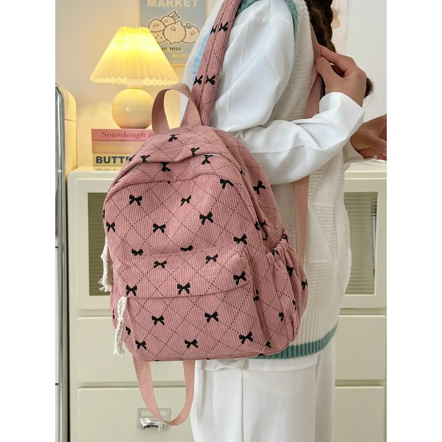 Fashionable Colorblock Bow Pattern Backpack, Casual Versatile Backpack for Women, Trendy All-match School Bag for Daily Use
