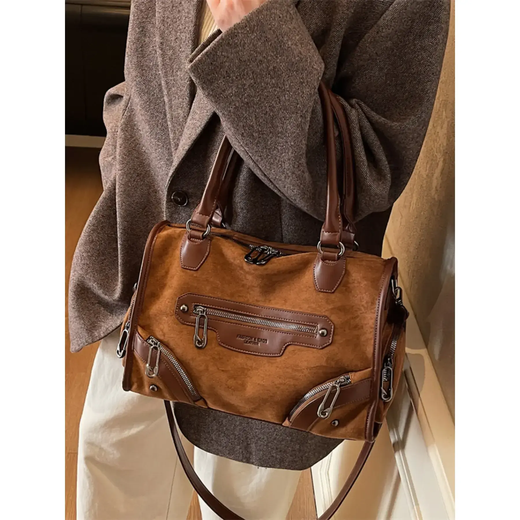 【Large capacity】: Features ample storage with multiple pockets, ensuring you can carry all your essentials effortlessly. 【Unique pattern】: Displays a random leopard print, adding a distinctive visual element that sets it apart from other bags. 【Soft material】: Crafted from suede-like fabric, providing a pleasant tactile experience while maintaining a refined appearance. 【Diverse use】: Can be used as a tote or crossbody, offering flexibility for different carrying preferences throughout your day. 【Seasonal versatility】: Designed for all seasons, seamlessly transitioning from spring to autumn for year-round enjoyment.