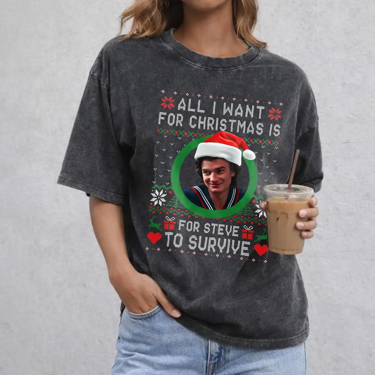 All I Want For Christmas Is For Steve To Survive Sweatshirt, Funny Starnger Things Sweater, Steve Harrington Christmas Shirt, Christmas Gifts