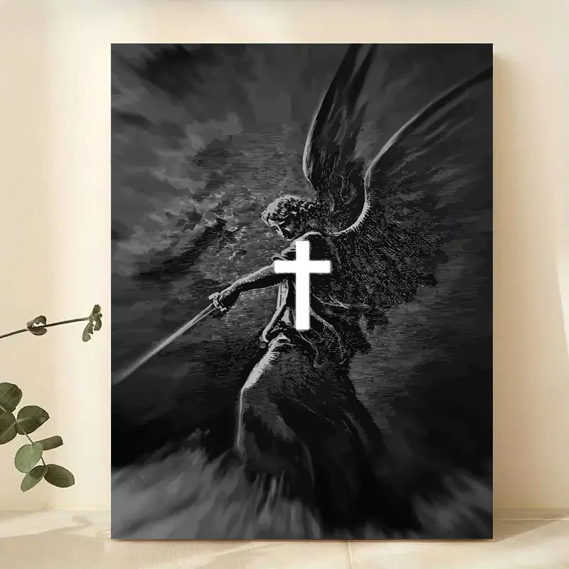 1 piece/set Frameless Canvas Painting Print Poster, Classic Black and White Illustration Art, Angel with the Sword, a perfect gift for religious culture enthusiasts, and an ideal gift for bedroom, living room, kitchen, dorm hallway, mural, wall decoration