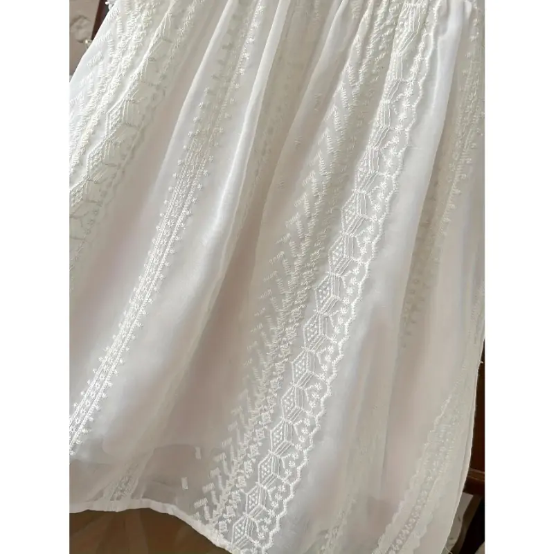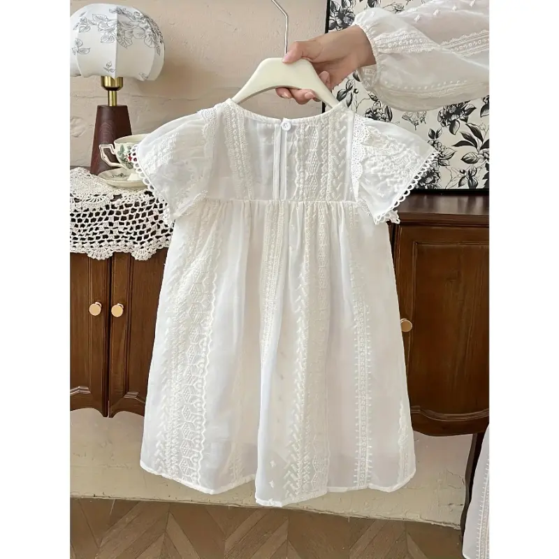 Girls' summer sleeveless A-line dress, featuring lace petal sleeves and a short skirt - solid color round-neck dress, machine washable, loose fit, suitable for parties and weddings