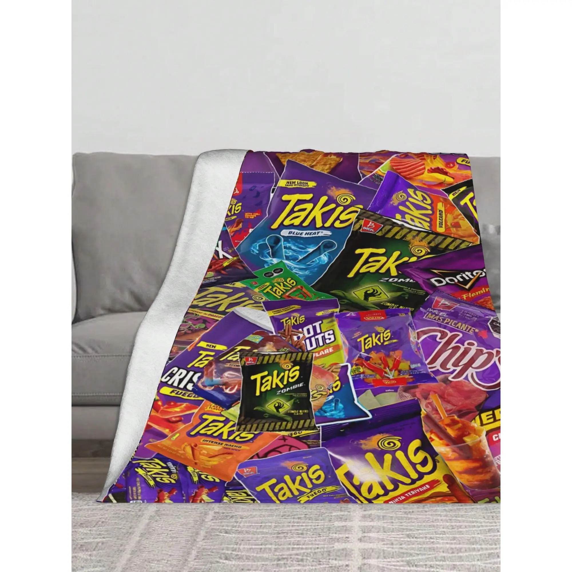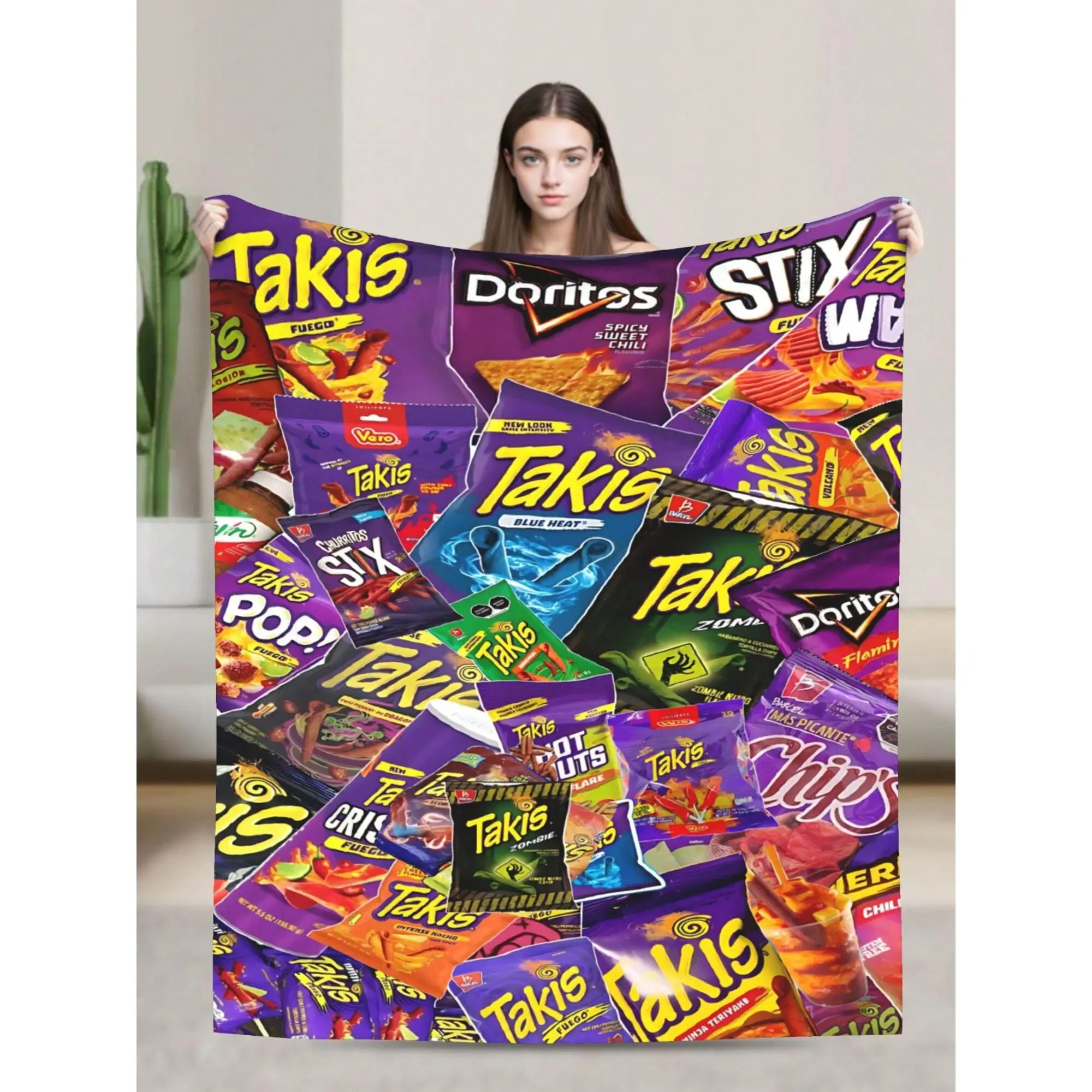 1pcs Soft Personalised Takis Merch Flannel Thick Blanket, Suitable For Sofa, Bed, Living Room, Travel, Office, Shawl, Nap Blanket, Air Conditioning Blanket, Bed Sheet, Camping, Ideal Gift, Daily Gift