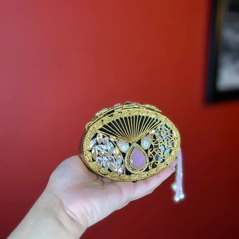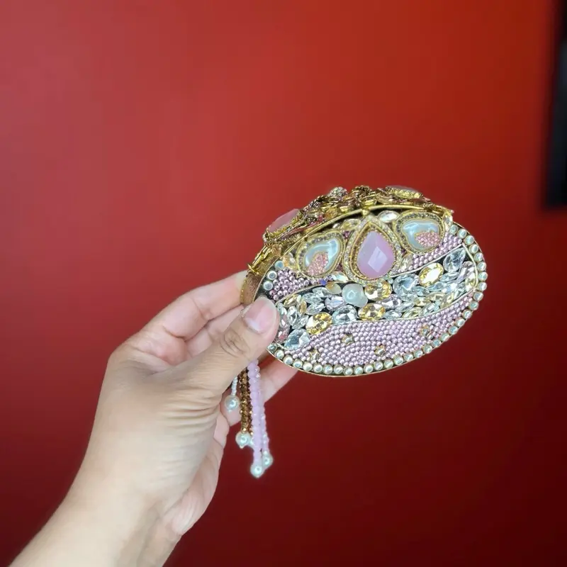 💎 With its unique design, the Blush Sultan Jewel Clutch is a versatile accessory. It pairs well with various outfits, making it a must-have for your collection. The clutch's design ensures it remains a timeless piece, suitable for all special occasions.