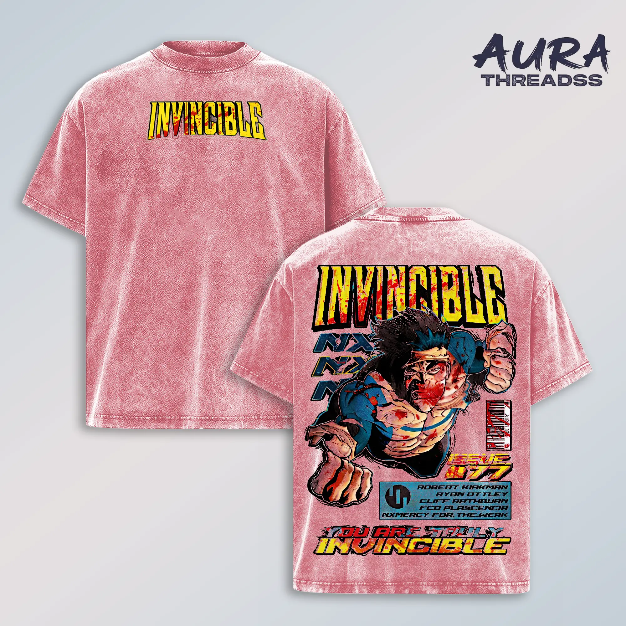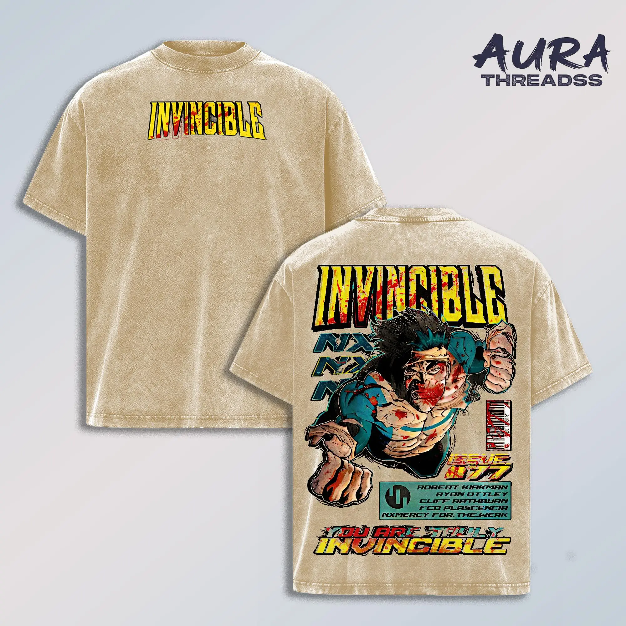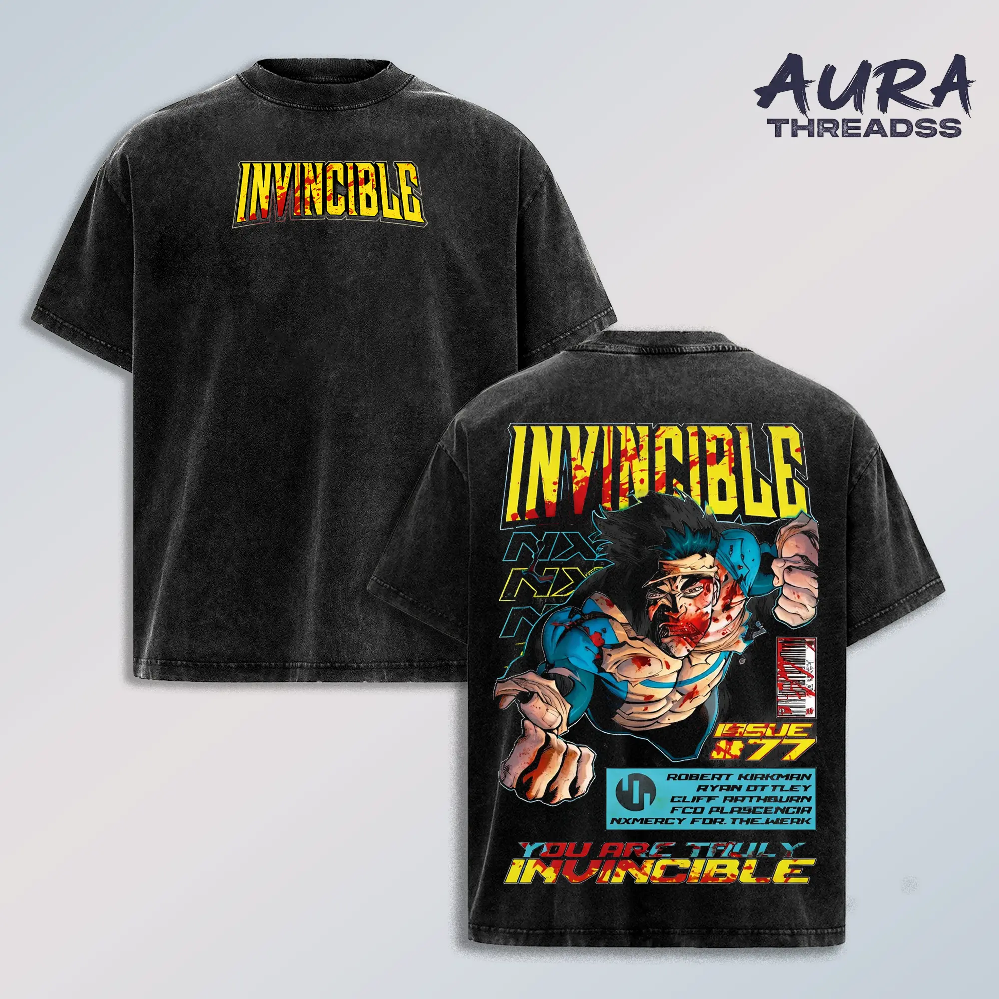 5. Invincible Mark Grayson Washed T-Shirt Vintage Graphic Tee Superhero Streetwear Unisex Oversized Acid Wash Cotton Shirt Comic Fan Gift