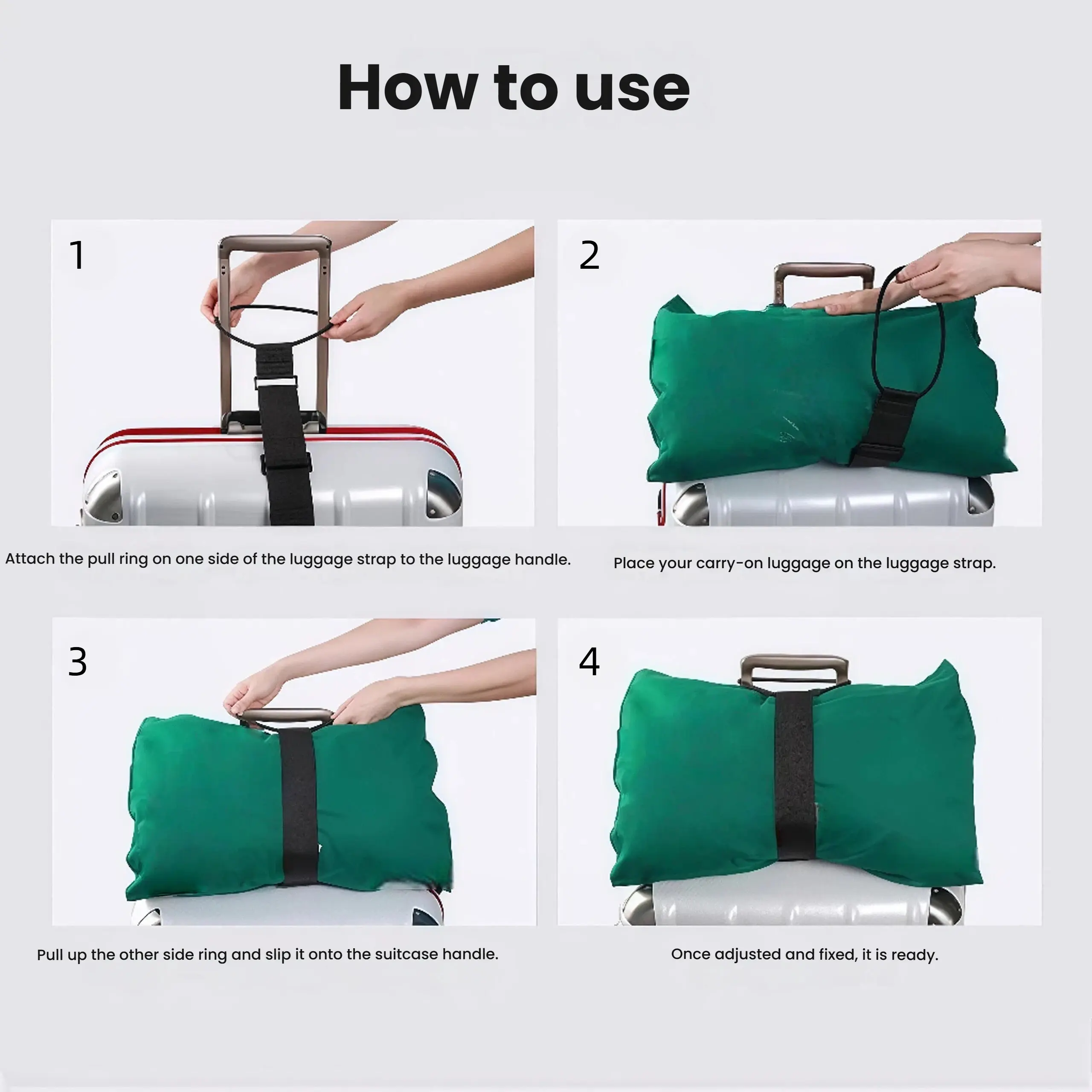 ·Adjustable Design: Fits various luggage sizes.