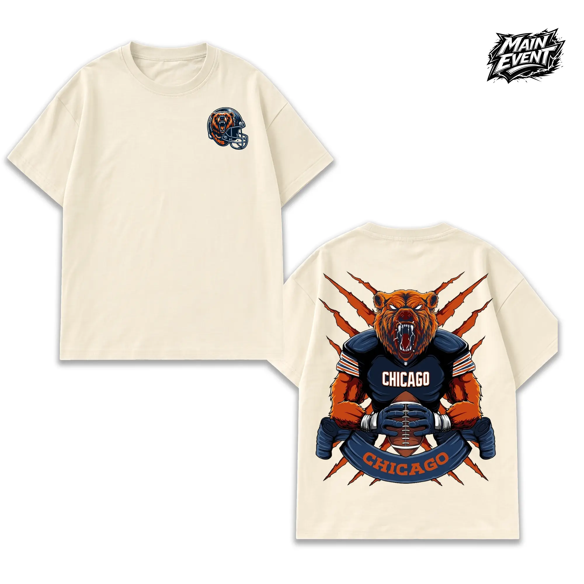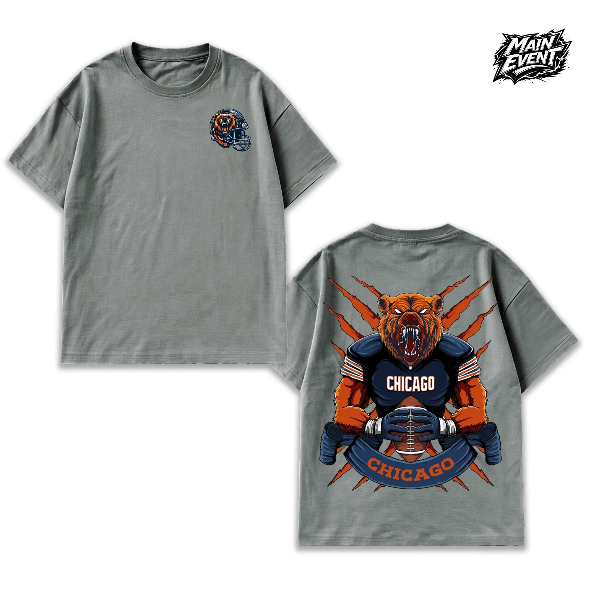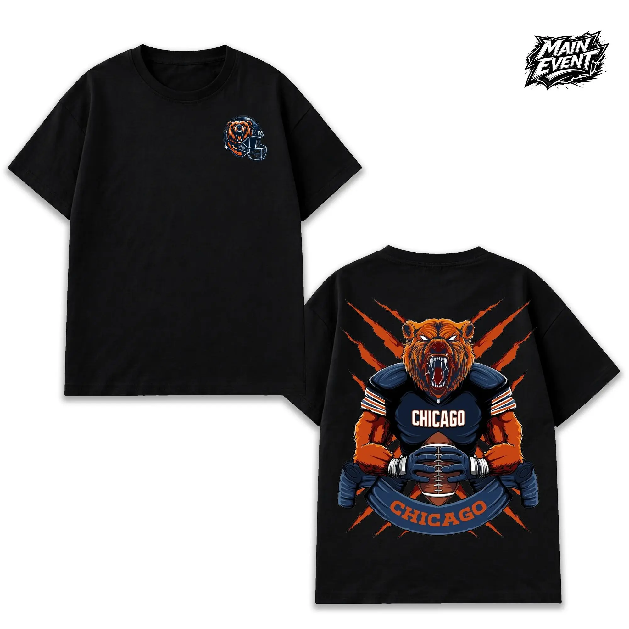 Chicago Football Men's T-Shirt, Bear Mascot Graphic Tee, Chicago Fan Shirt, Football Lover Gift, Game Day Shirt, Sports Graphic T-Shirt, Black Cotton Tee