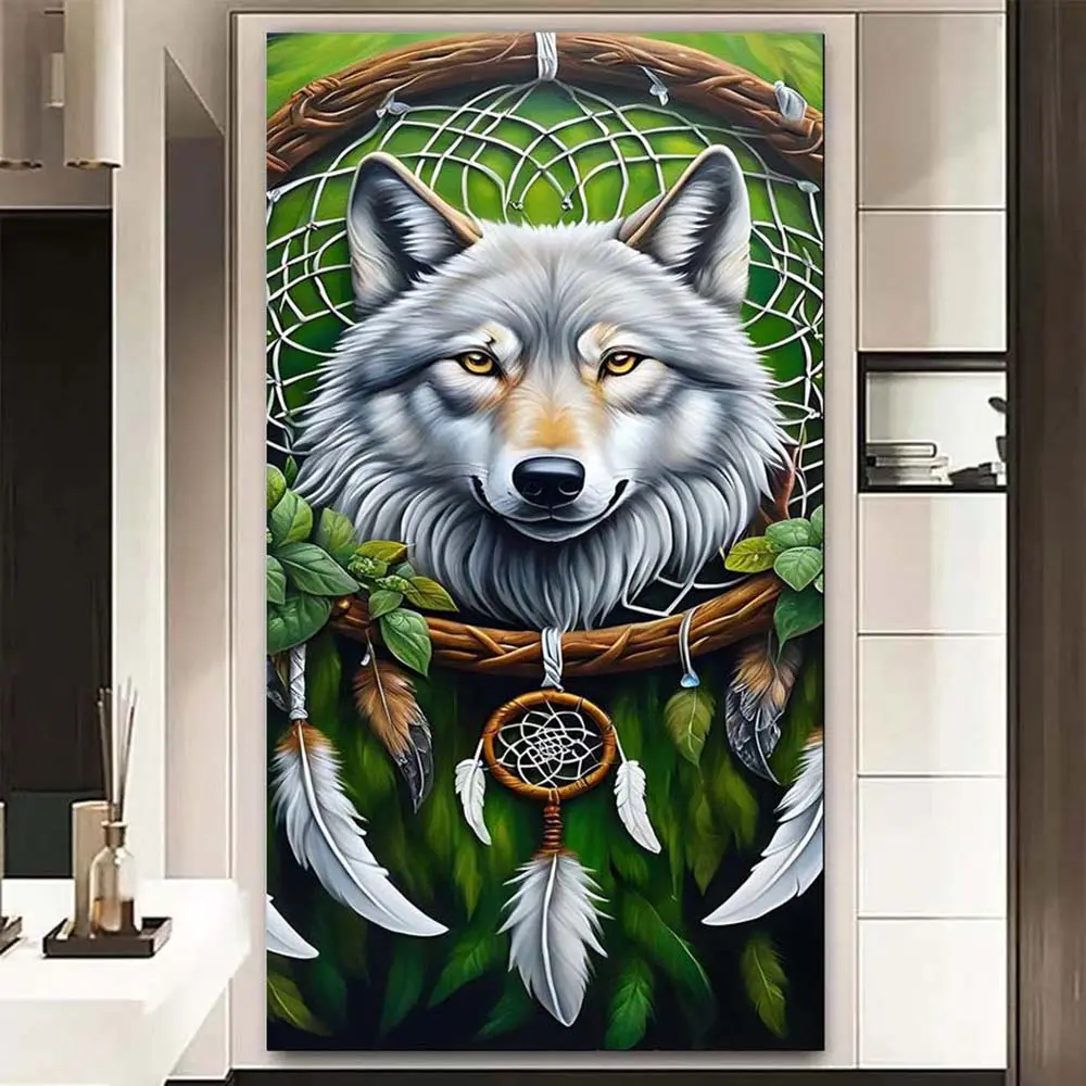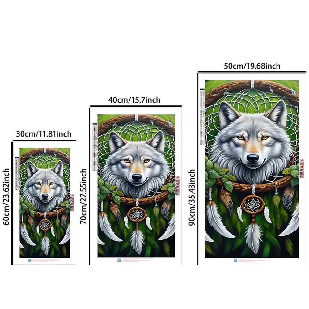 5D Diamond Painting Kit Full Round Drill Wolf, Dreamcatcher, Feather DIY Mosaic Wall Art, Beginner Craft Set (with Tools), Home Wall Decoration Gift, Diamond Art Kit