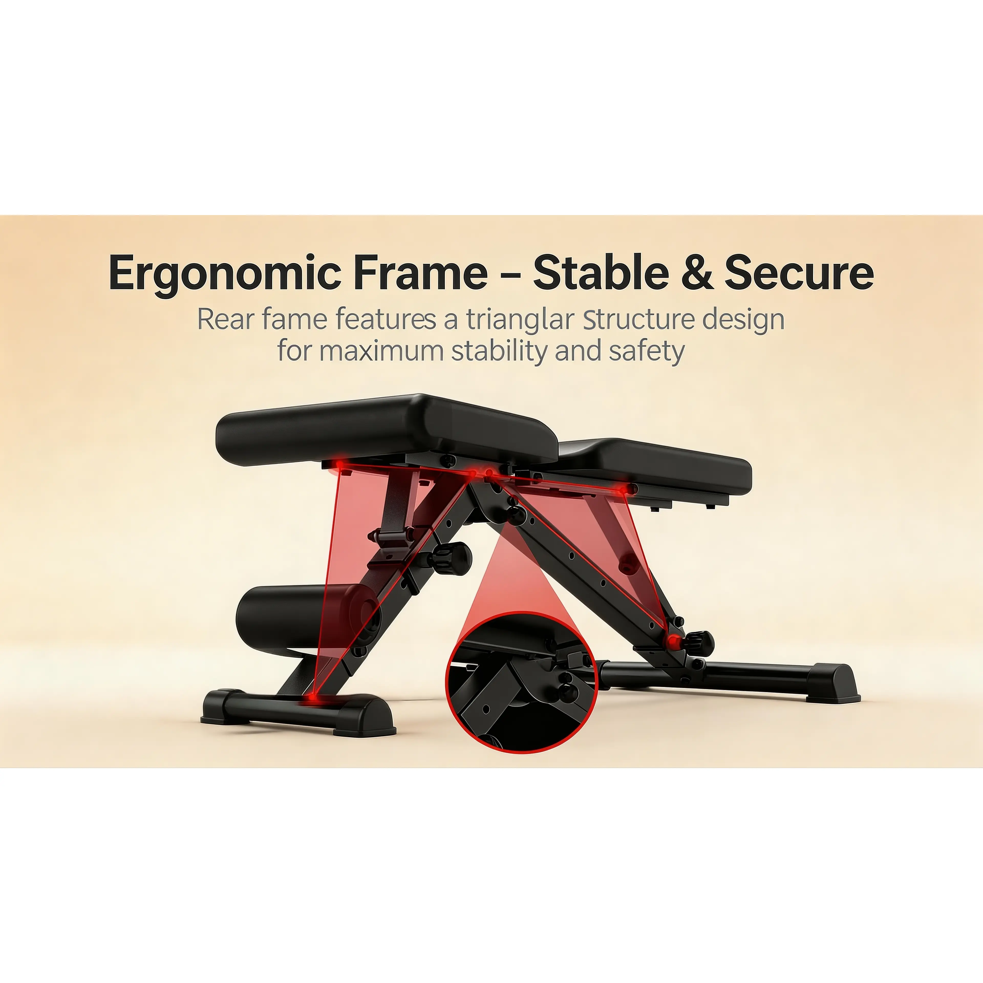 Uses a thickened square steel tube frame, widened anti-slip base, and triangular mechanical support structure, providing good load-bearing capacity and preventing wobbling or tipping during training.High-density foam cushions offer comfortable support, remaining comfortable even after prolonged use.