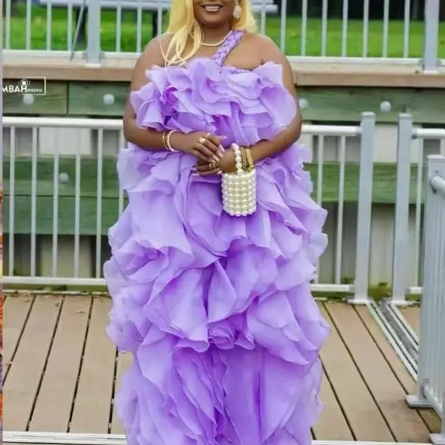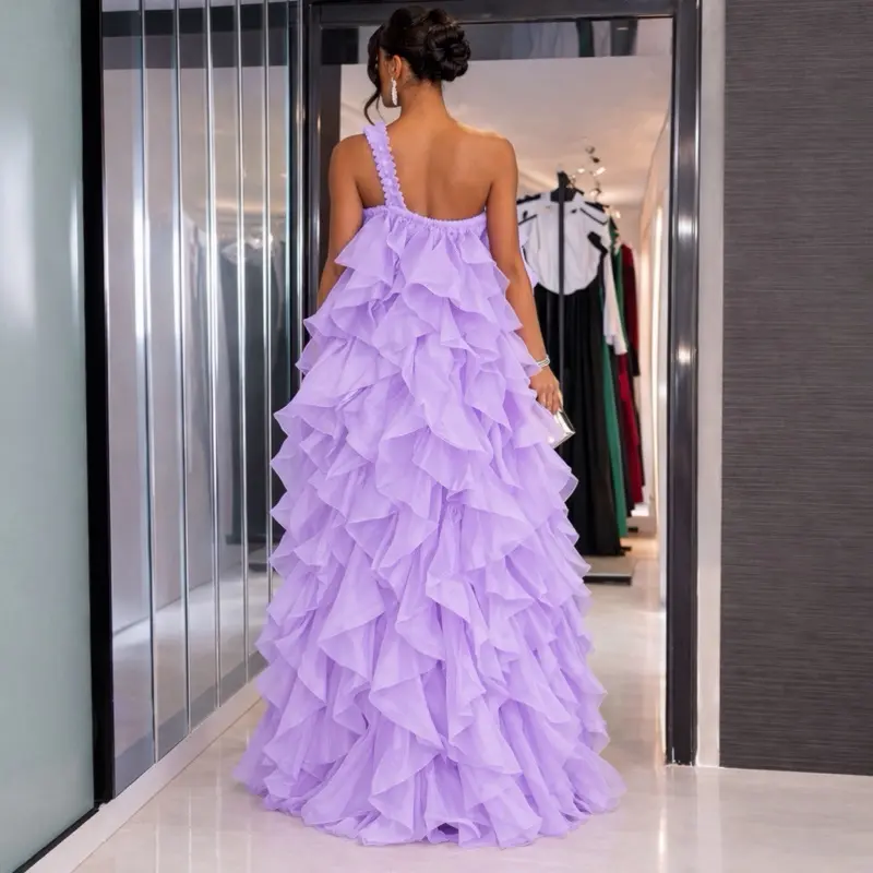 Make an unforgettable entrance in the lilac Empress Ruffle Gown, a breathtaking statement piece designed for bold elegance. This couture-inspired dress features dramatic cascading organza ruffles that create volume, texture, and movement with every step. The asymmetrical shoulder design adds a modern touch while the layered silhouette enhances the gown’s luxurious presence.