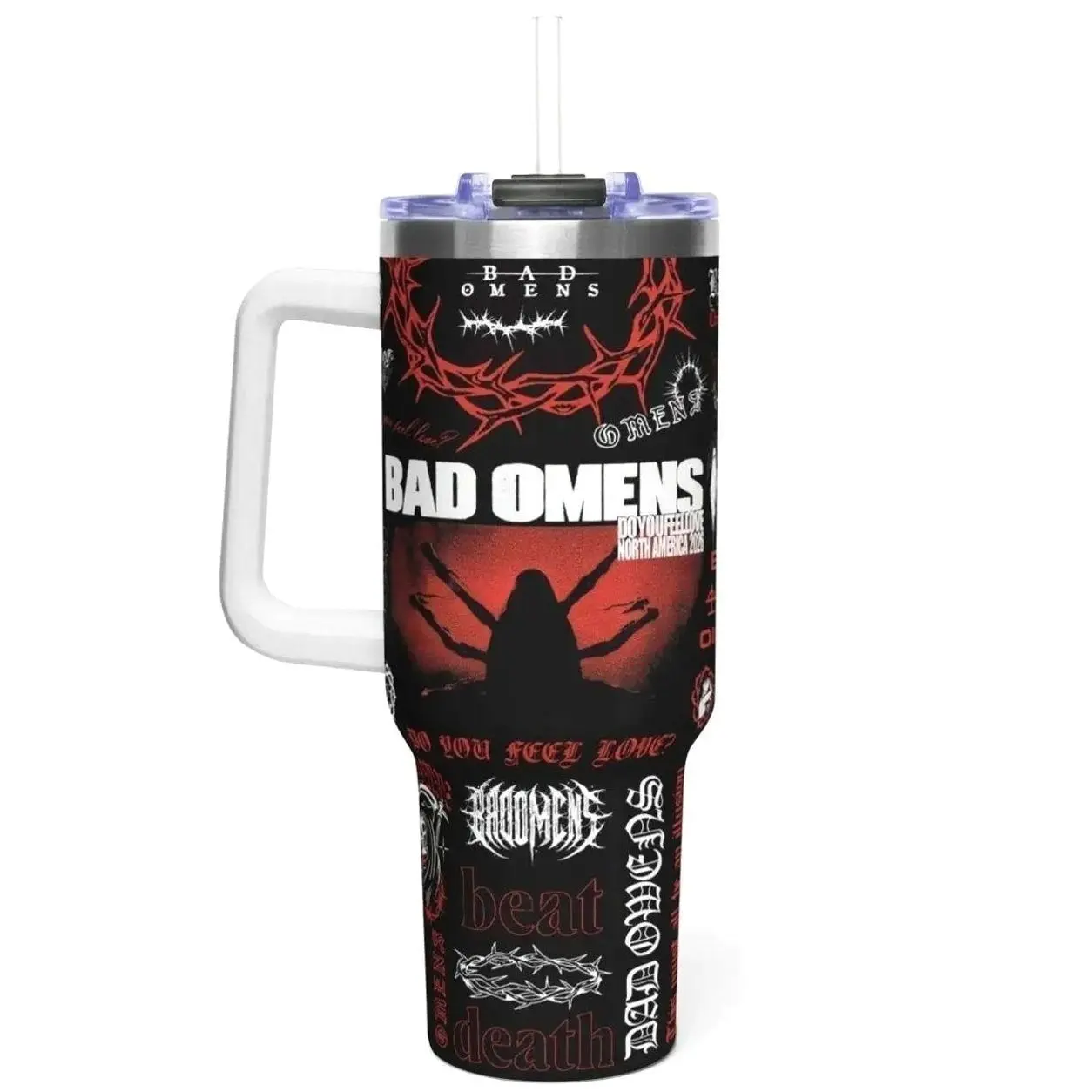 2026 Bad Omens Do You Feel Love Tumbler With Handle, Noah Sebastian Tour Insulated Travel Mug 40oz, Metal Core Alternative Gift Mug, Gift For Him, Gift For Her.