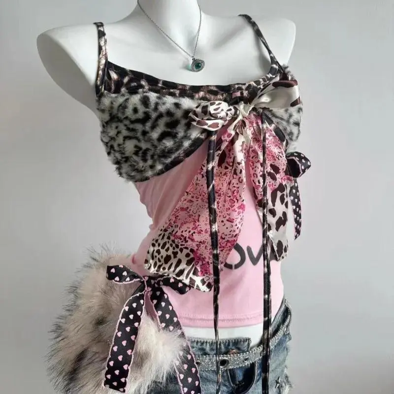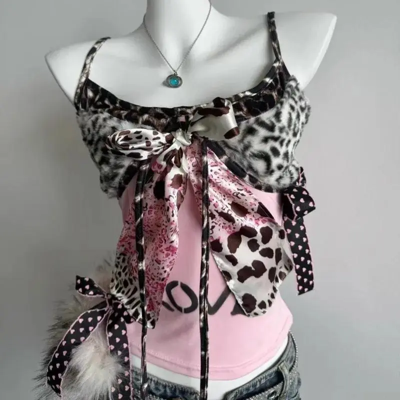 Step into the world of 90s nostalgia with our Harajuku-inspired Vintage Slim Camisole.This top is the perfect blend of retro charm and modern fashion, featuring a bold leopard patchwork design that's sure to turn heads.The bow halter adds a touch of romantic elegance, while the slim fit ensures a flattering silhouette.Whether you're heading out for a casual day or looking to spice up your night out, this tank top is versatile enough to fit any occasion.