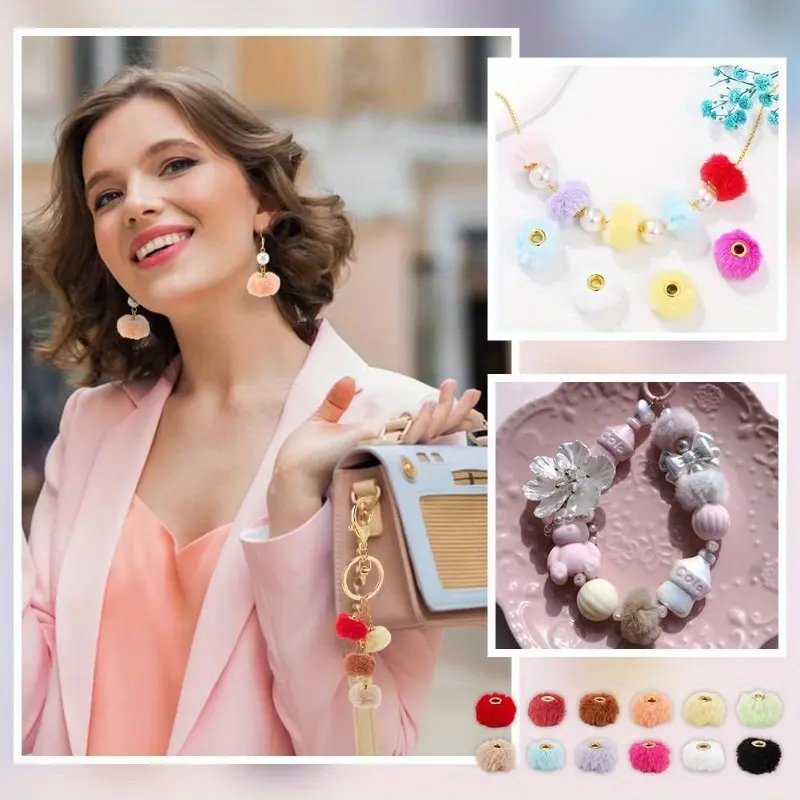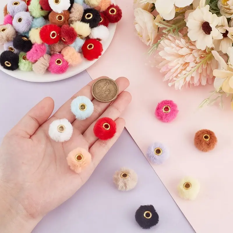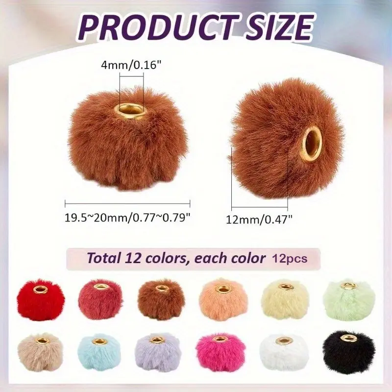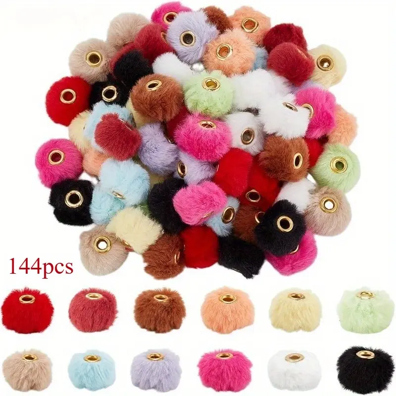 144PCS 12 Colors Fluffy Beads 20 mm Funny Beads Pen Decorations Beads Cute Plush Ball Beaded for Pens Beadable Keychains DIY Craft Jewellery Making Supplies Hole: 4 mm (Includes Christmas Red)
