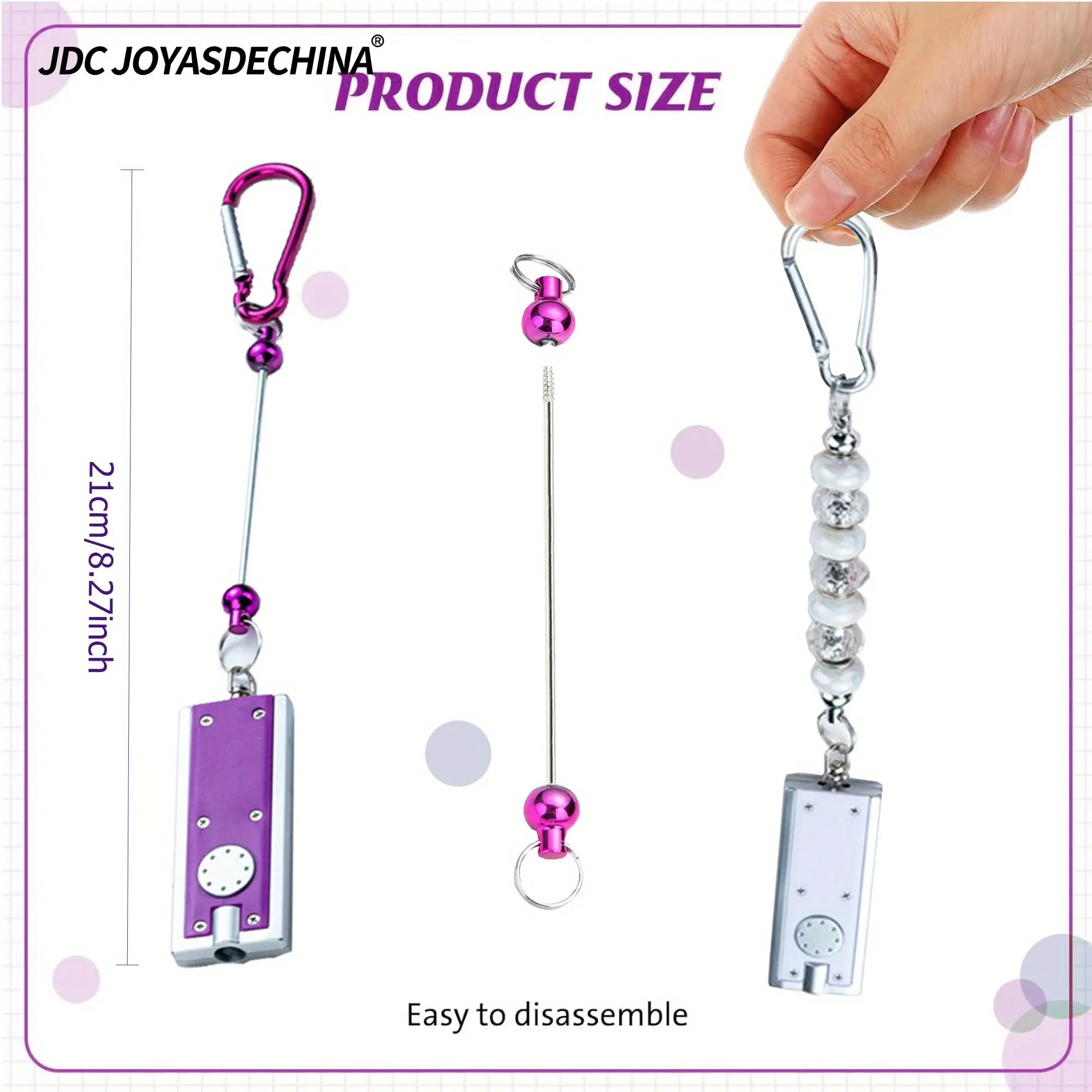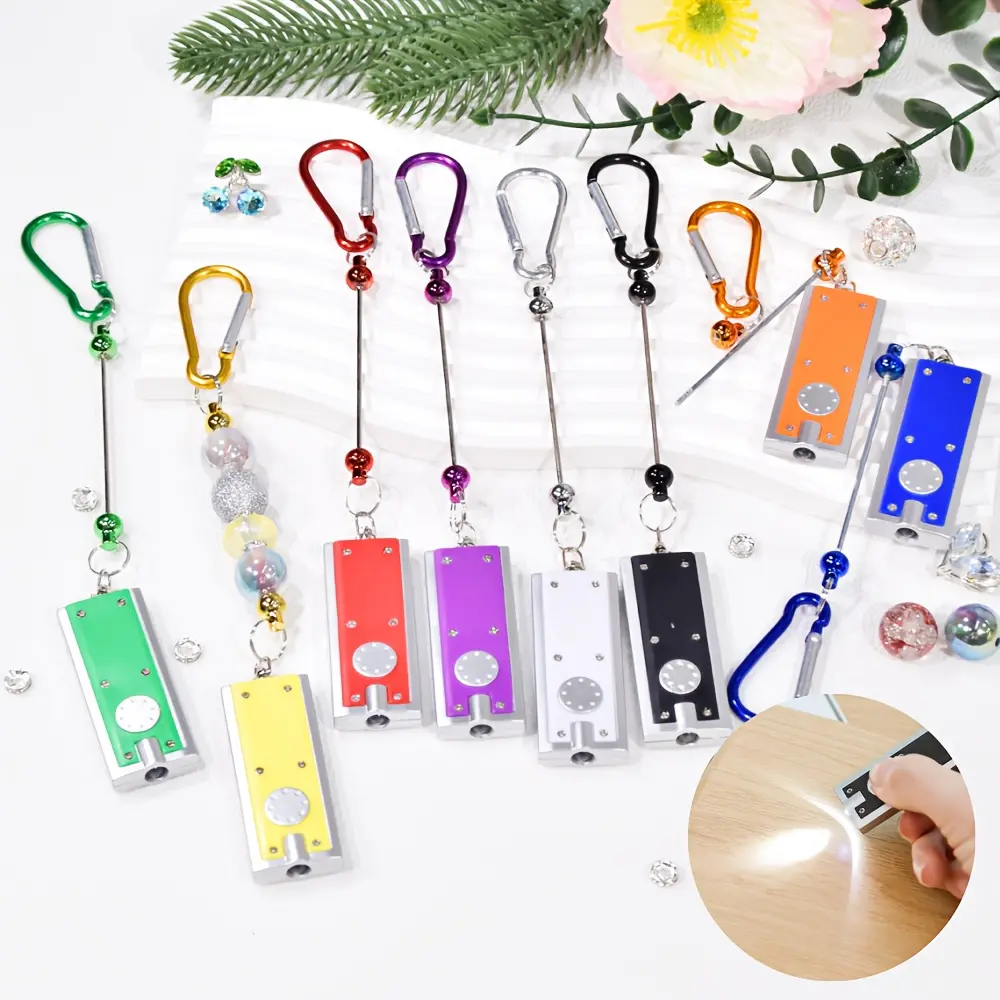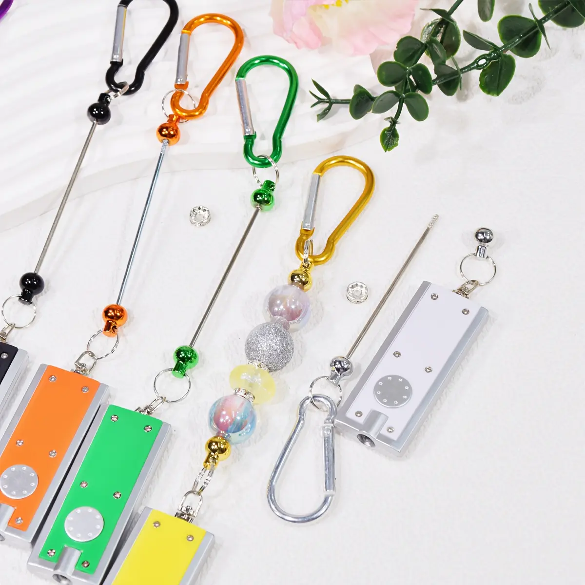 24/16/8 Sets DIY Beadable Keychain Include 8pcs Beadable Keychains Bars with 8Pcs Mini LED Light, Key Chain Accessories Bulk, Blank Creative Keychains Bars for Gift Jewelry Making