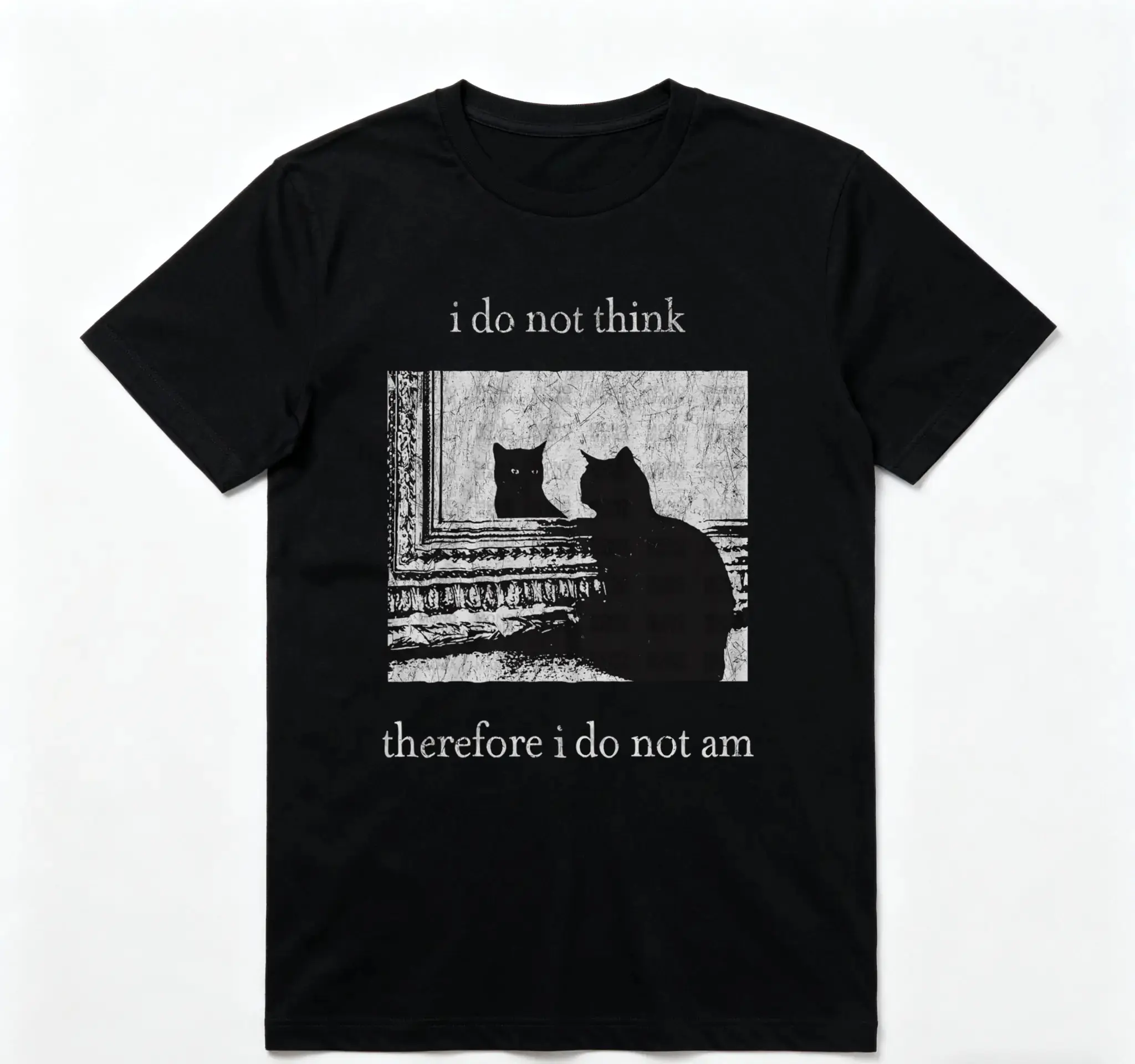 I Do Not Think Cat Tee Goth Clothing Funny Graphic 90s Vintage Men Clothing Style Trendy T-Shirts Good Graphic Tees Ropa Unisex Hoodies Go Hard Vibe Philosophy Student Gift Crewneck 100% Cotton Print