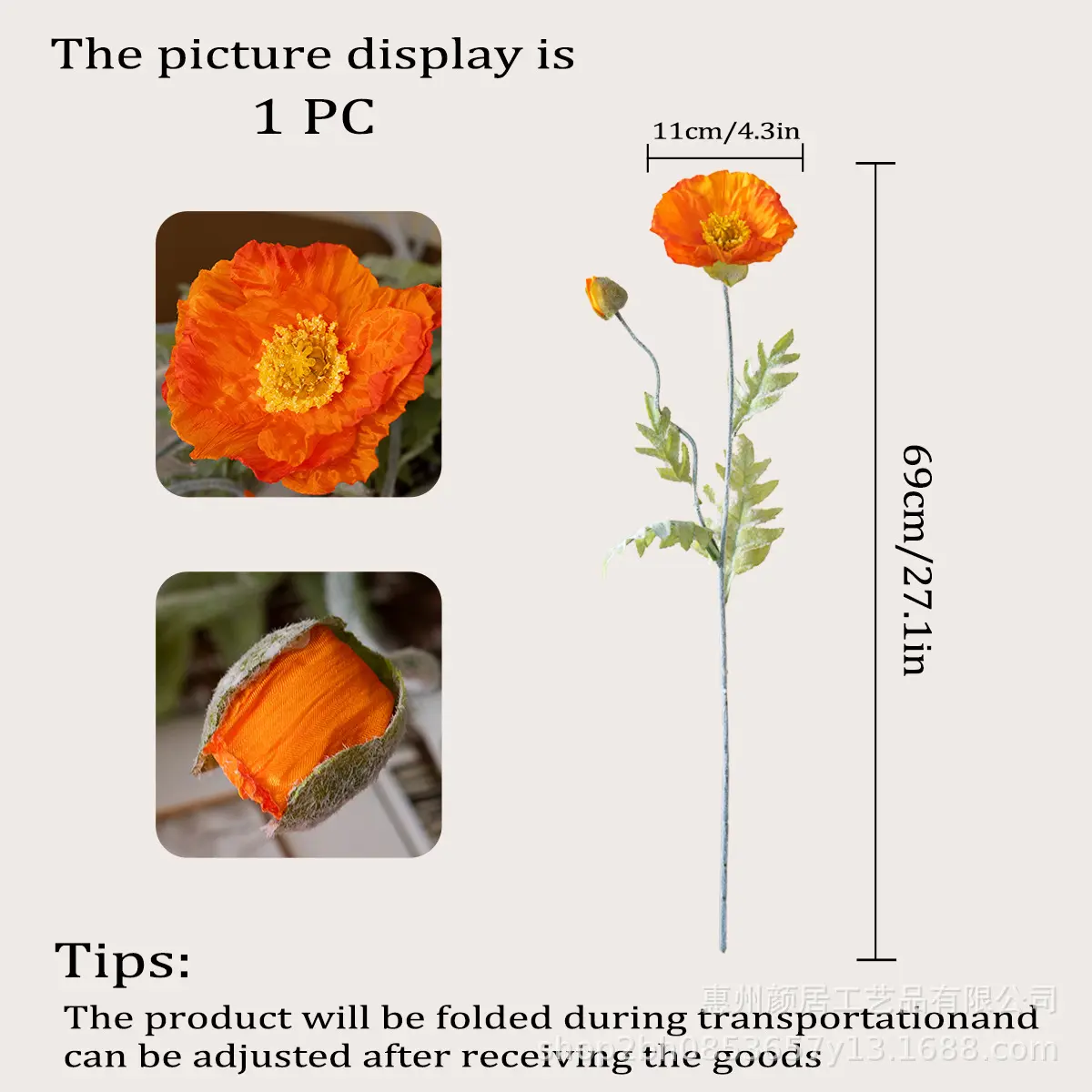2 large poppy flowers (orange)