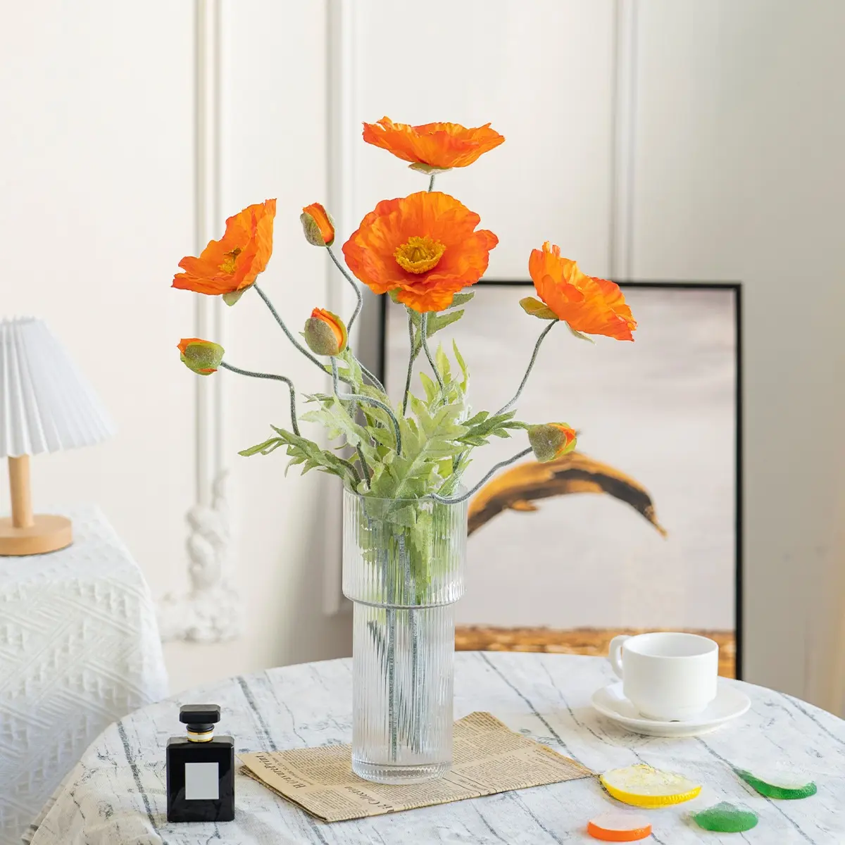 Artificial Poppy Bouquet Fake Flowers Poppy Flower Home Desktop Wedding Potted Plant Photography Prop Decoration