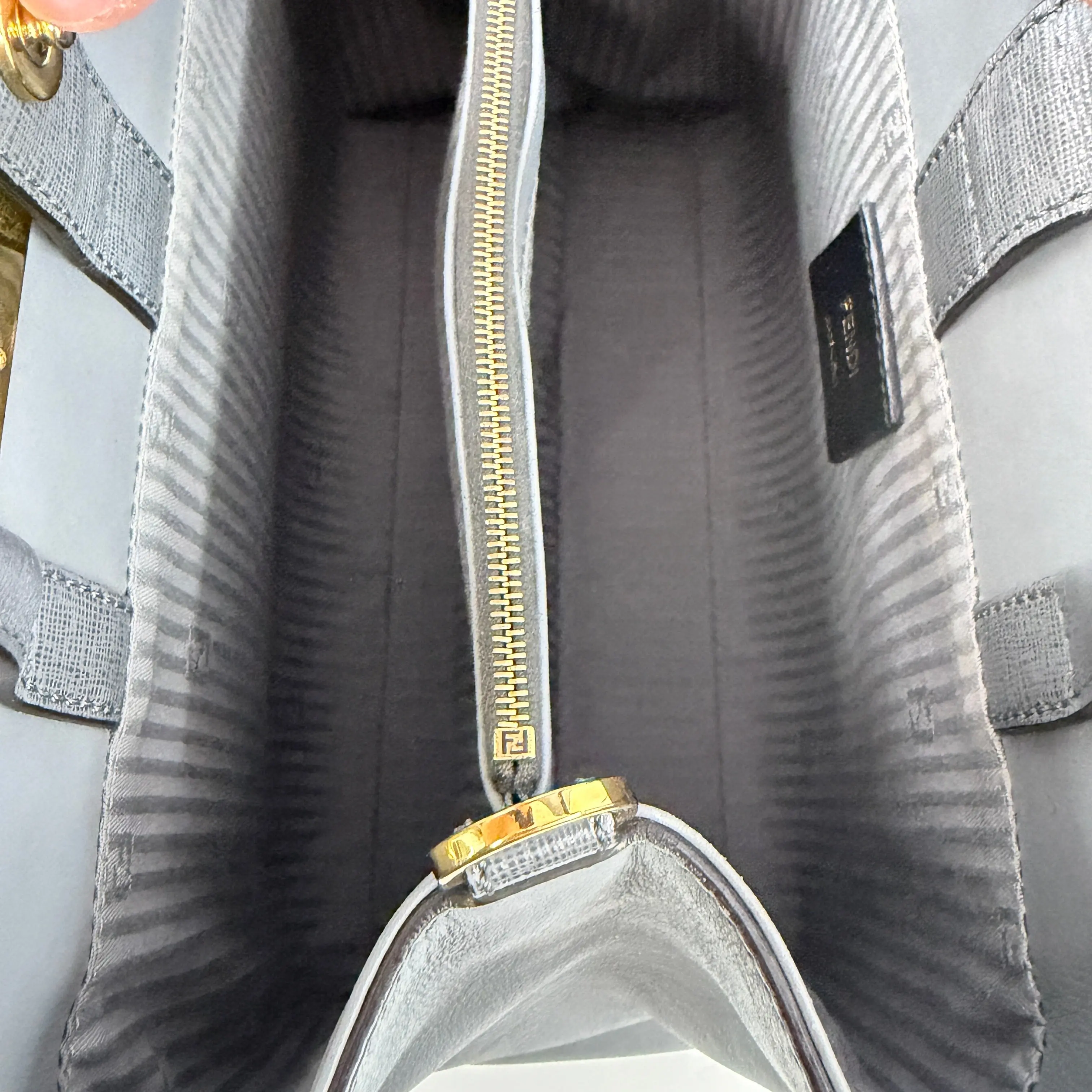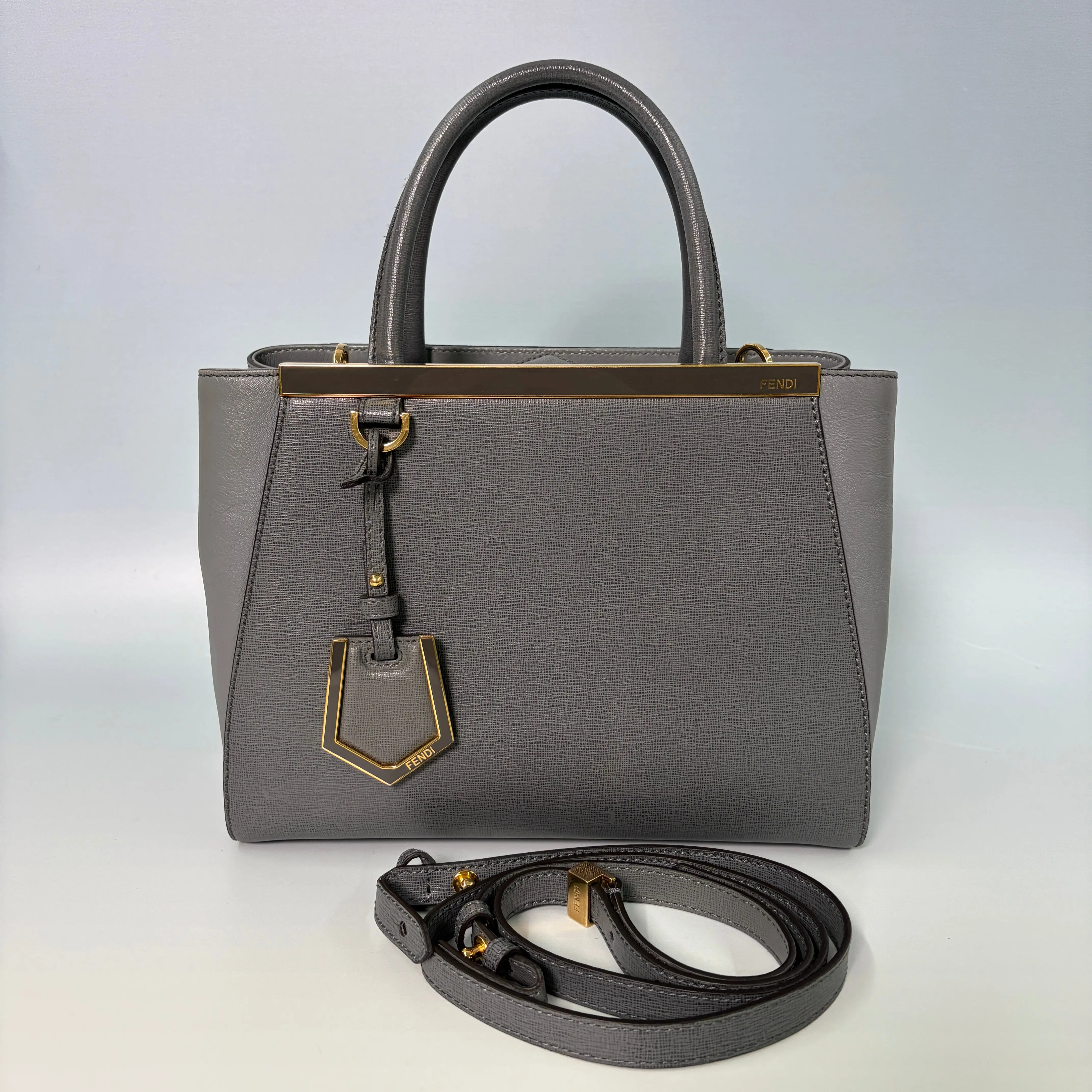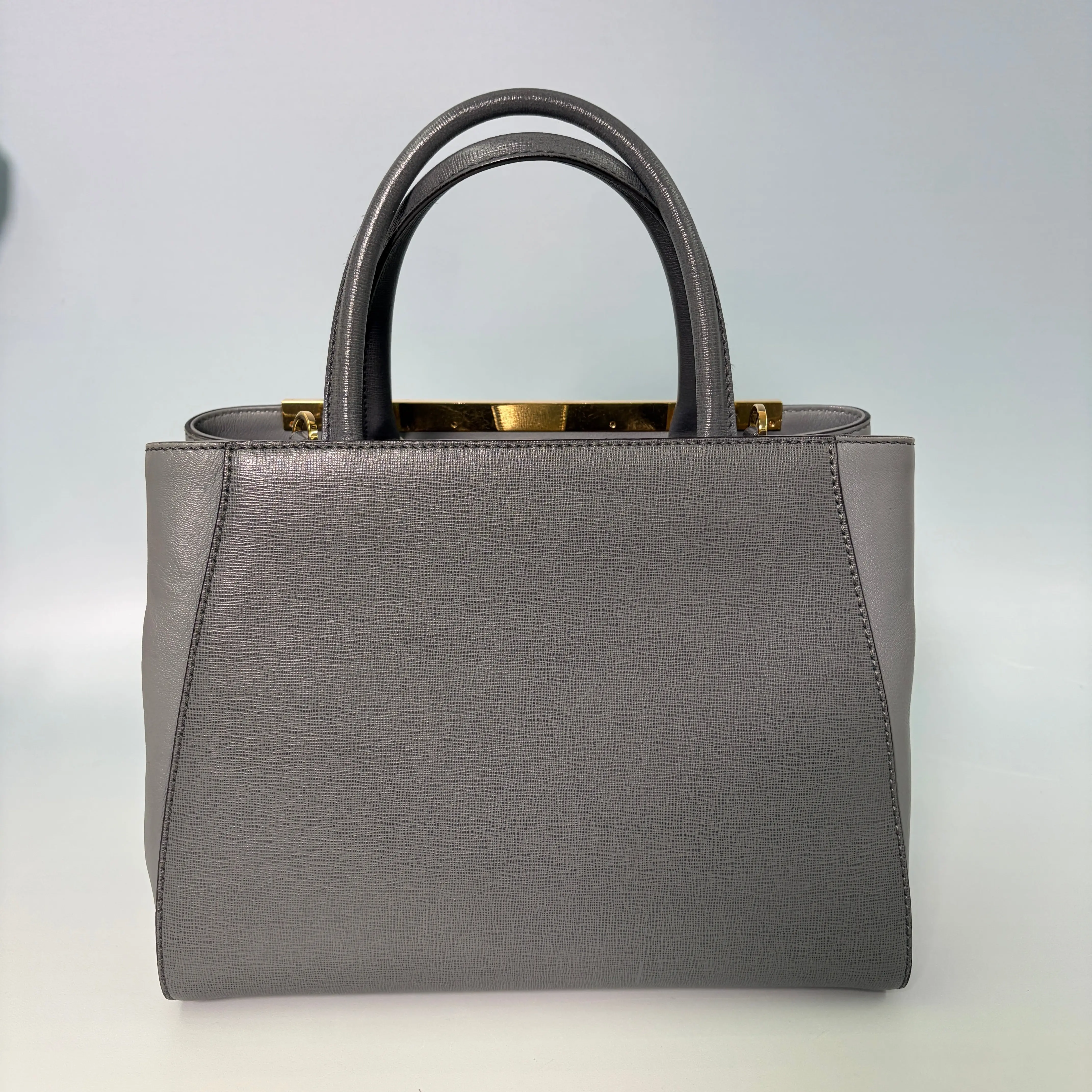 The Fendi 2Jours remains one of the most iconic silhouettes in the House's history, prized for its architectural balance and timeless sophistication. This petite edition is meticulously crafted from grey Elite calfskin, a textured leather renowned for its durability and resistance to wear.